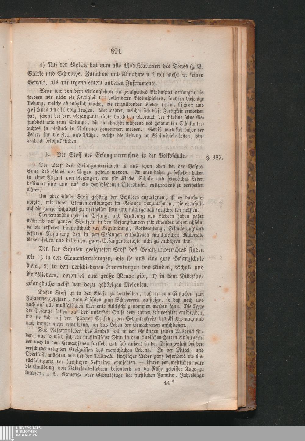 B. Der Stoff des Gesangunterrichtes in der Volksschule