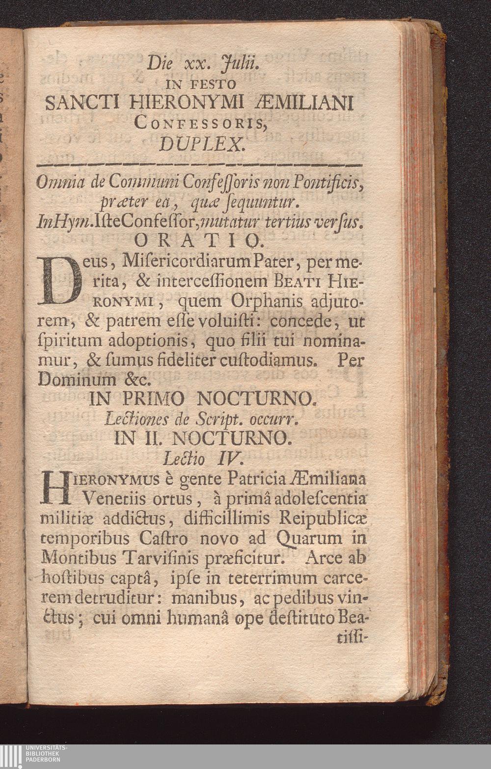 Die XX. Julii. In Festo Sancti Hieronymi Æmiliani Confessoris : Duplex