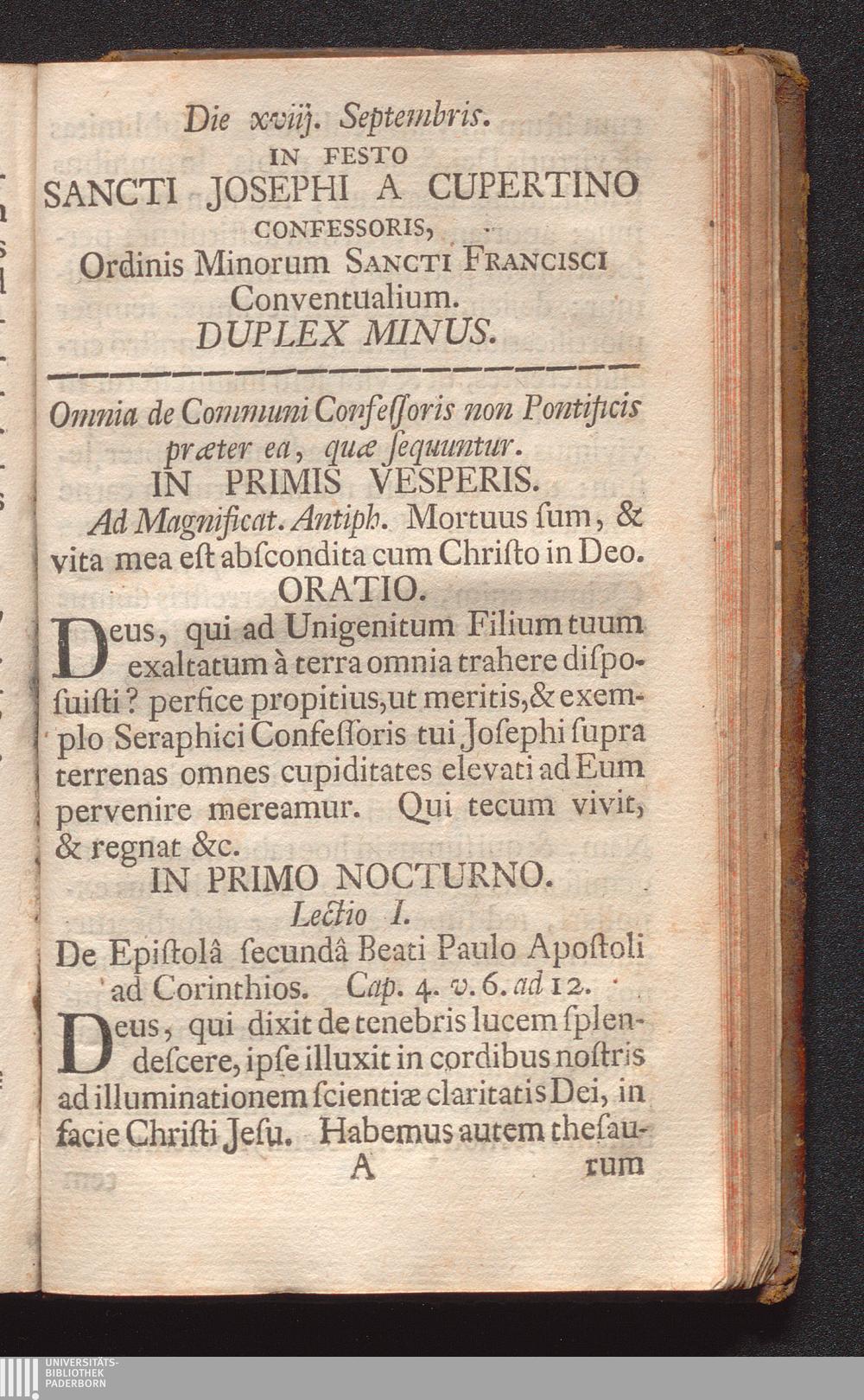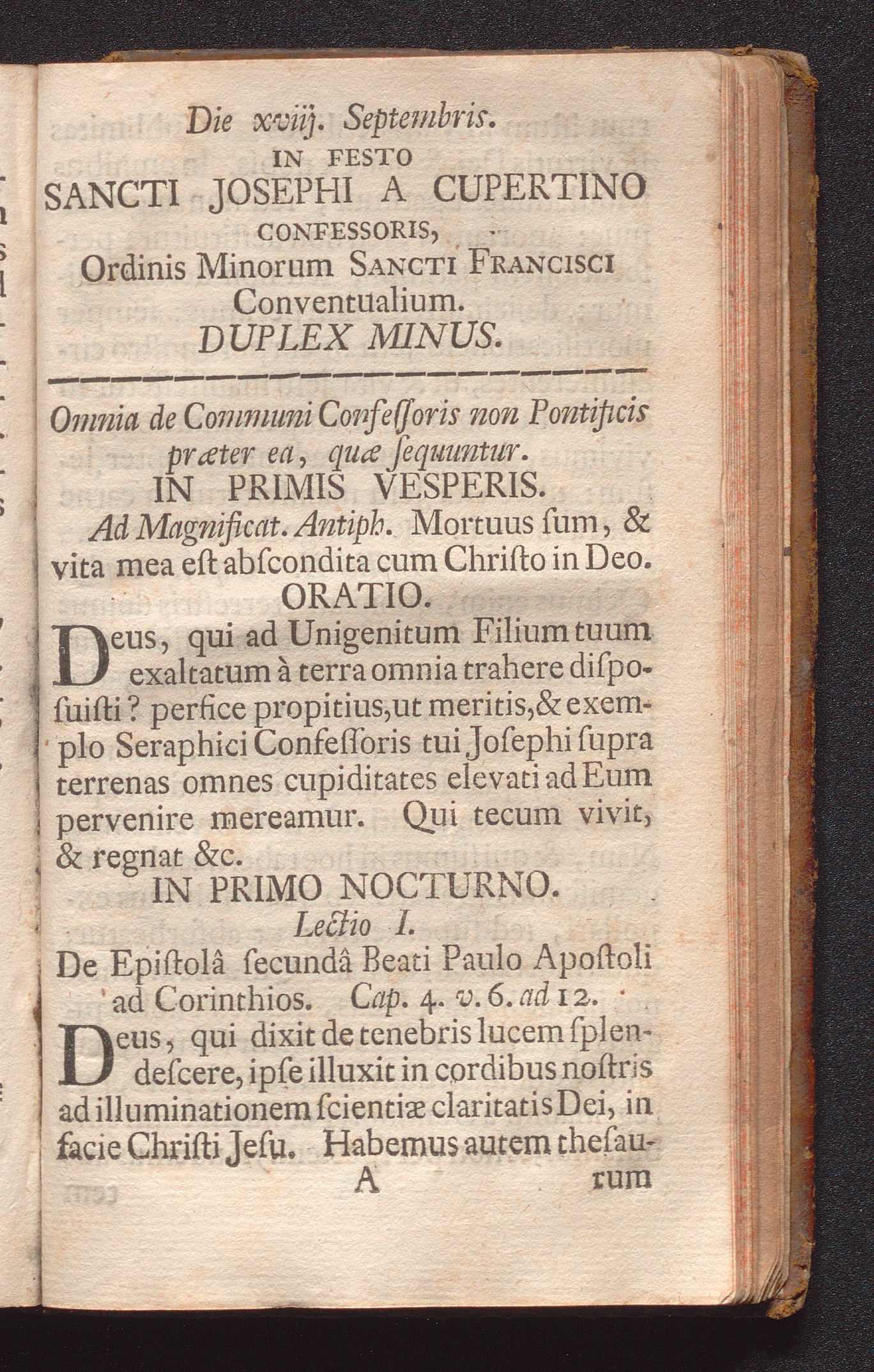 Die xviij. Septembris. In Festo Sancti Josephi A Cupertino Confessoris, Ordinis Minorum Sancti Francisci Conventualium : Duplex Minus