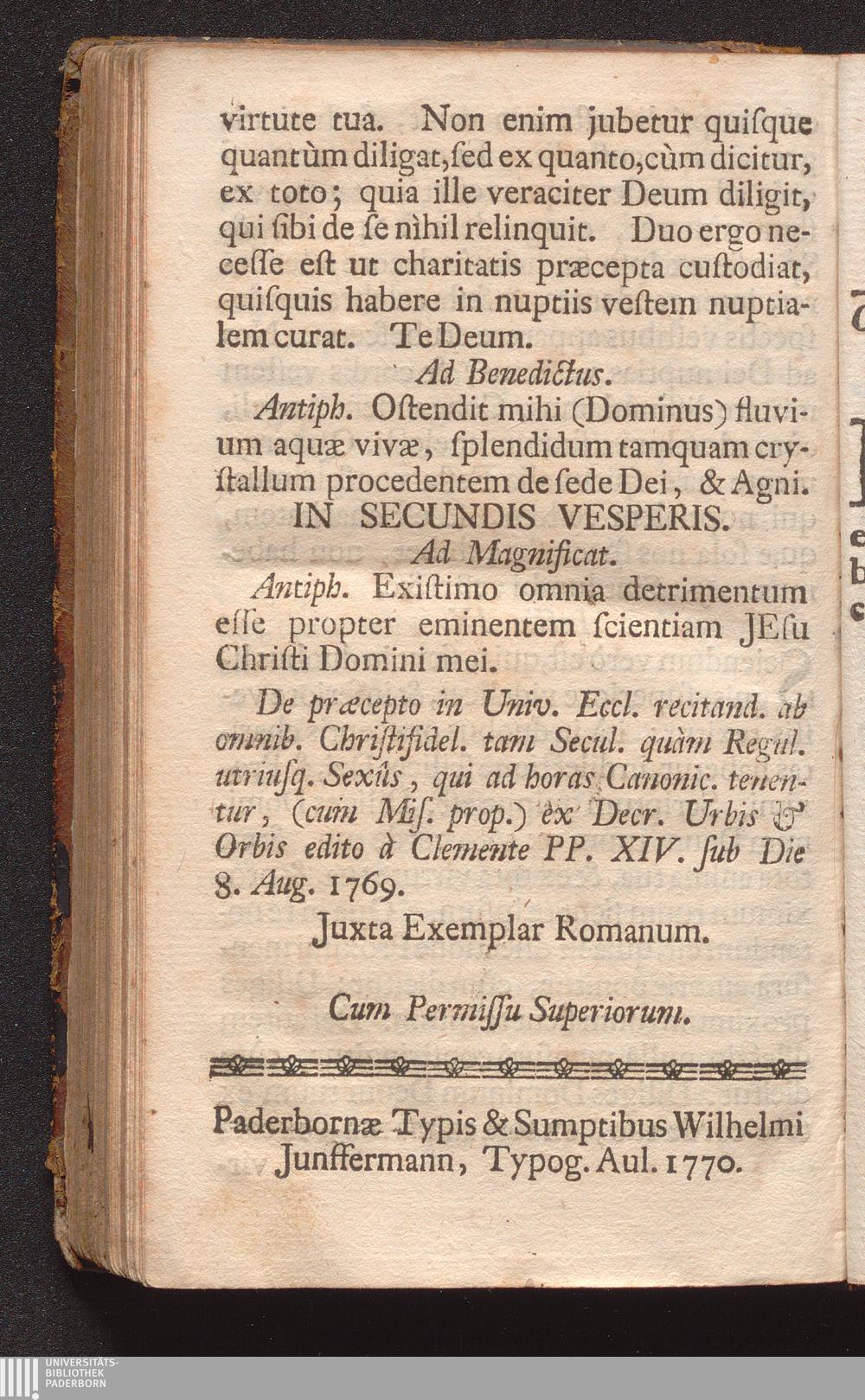 In Secundis Vesperis. As Magnificat.