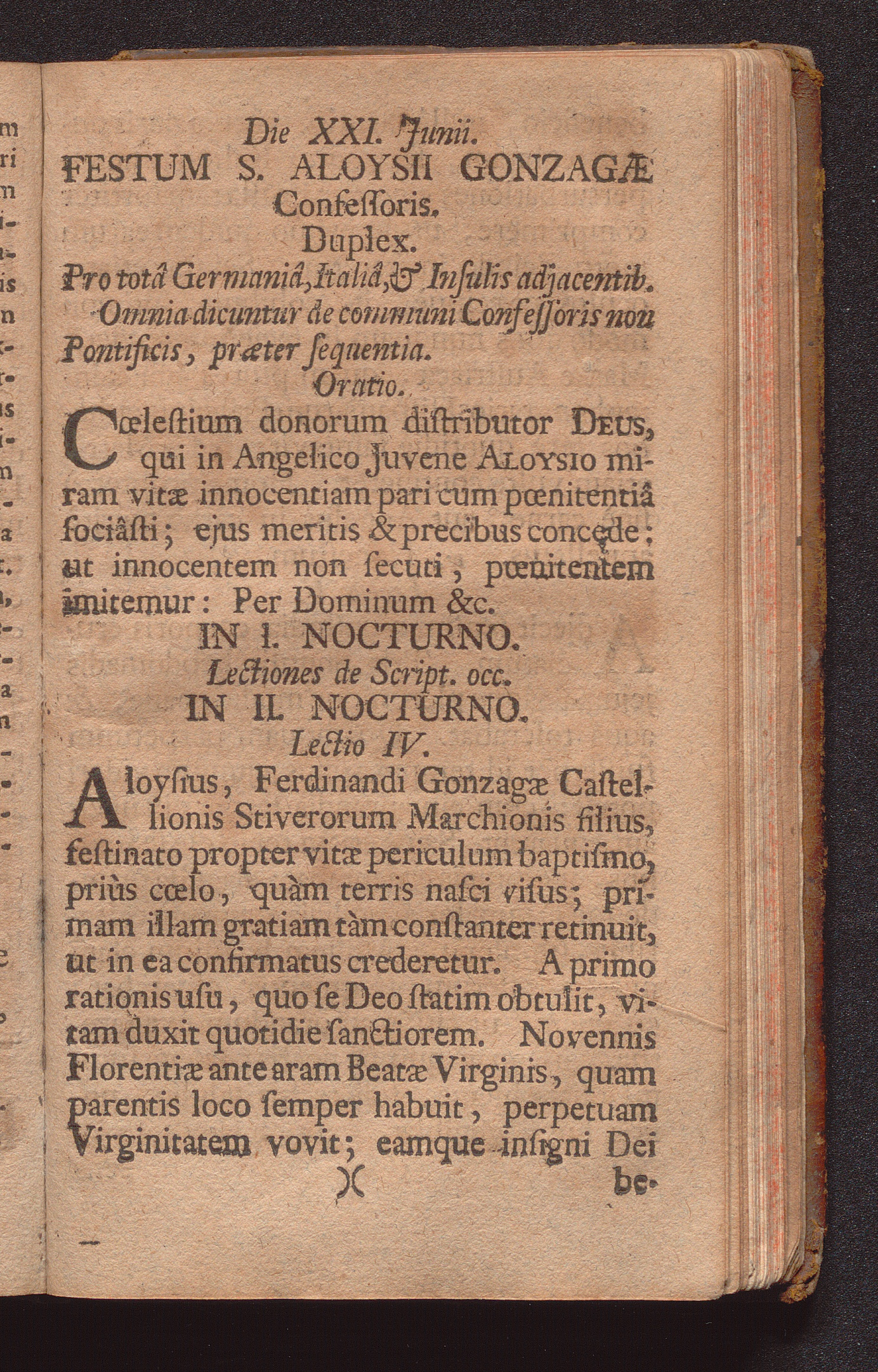 Die XXI. Junii. Festum S. Aloysii Gonzagæ Confessoris