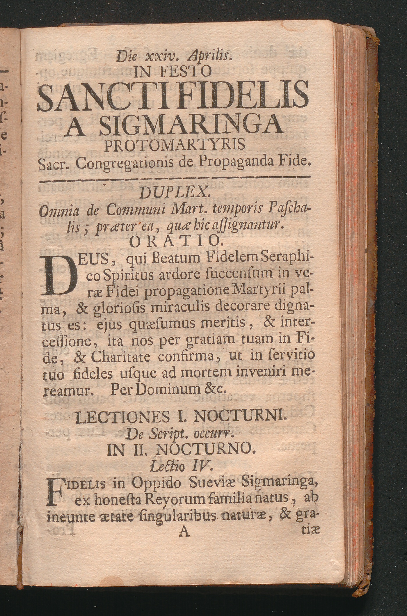 Die xxiv. Aprilis. In Festo Sancti Fidelis A Sigmaringa Protomartyris Sacr. Congregationis de Propaganda Fide. Duplex.