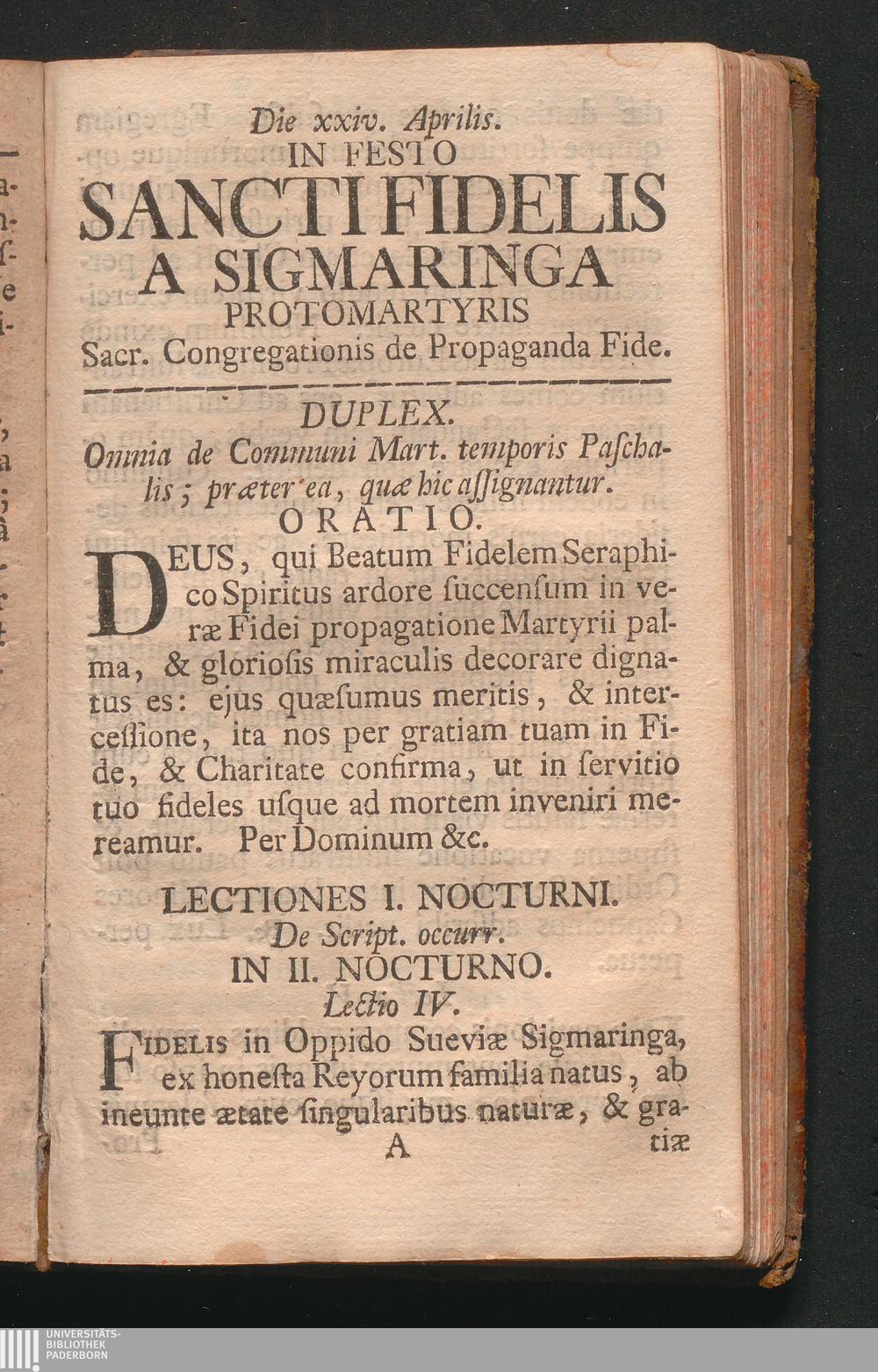 Die xxiv. Aprilis In Festo Sancti Fidelis A Sigmaringa Protomartyris Sacr. Congregationis[...]