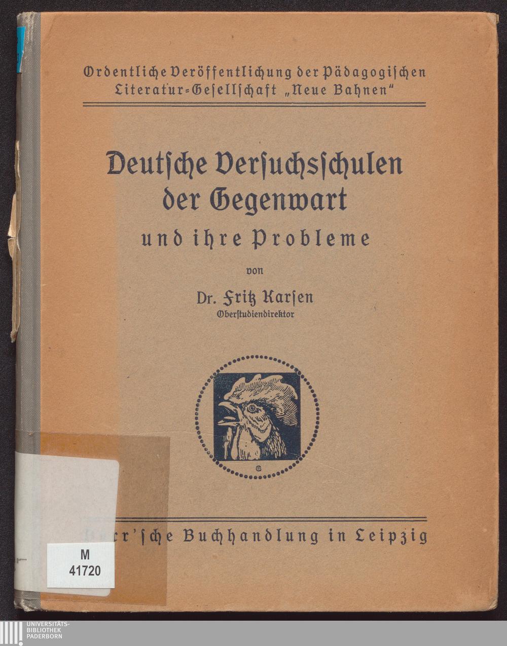Deutsche Versuchsschulen der Gegenwart und ihre Probleme / von Fritz Karsen