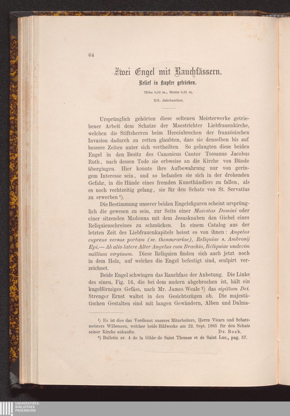 Die mittelalterlichen Kunst- und Reliquienschätze zu Maestricht, aufbewahrt in den ehemaligen Stiftskirchen des h. Servatius und Unserer Lieben Frau daselbst : archäologisch und historisch beschrieben und durch 66 Holzschnitte erläutert / von Franz Bock und M. Willemsen