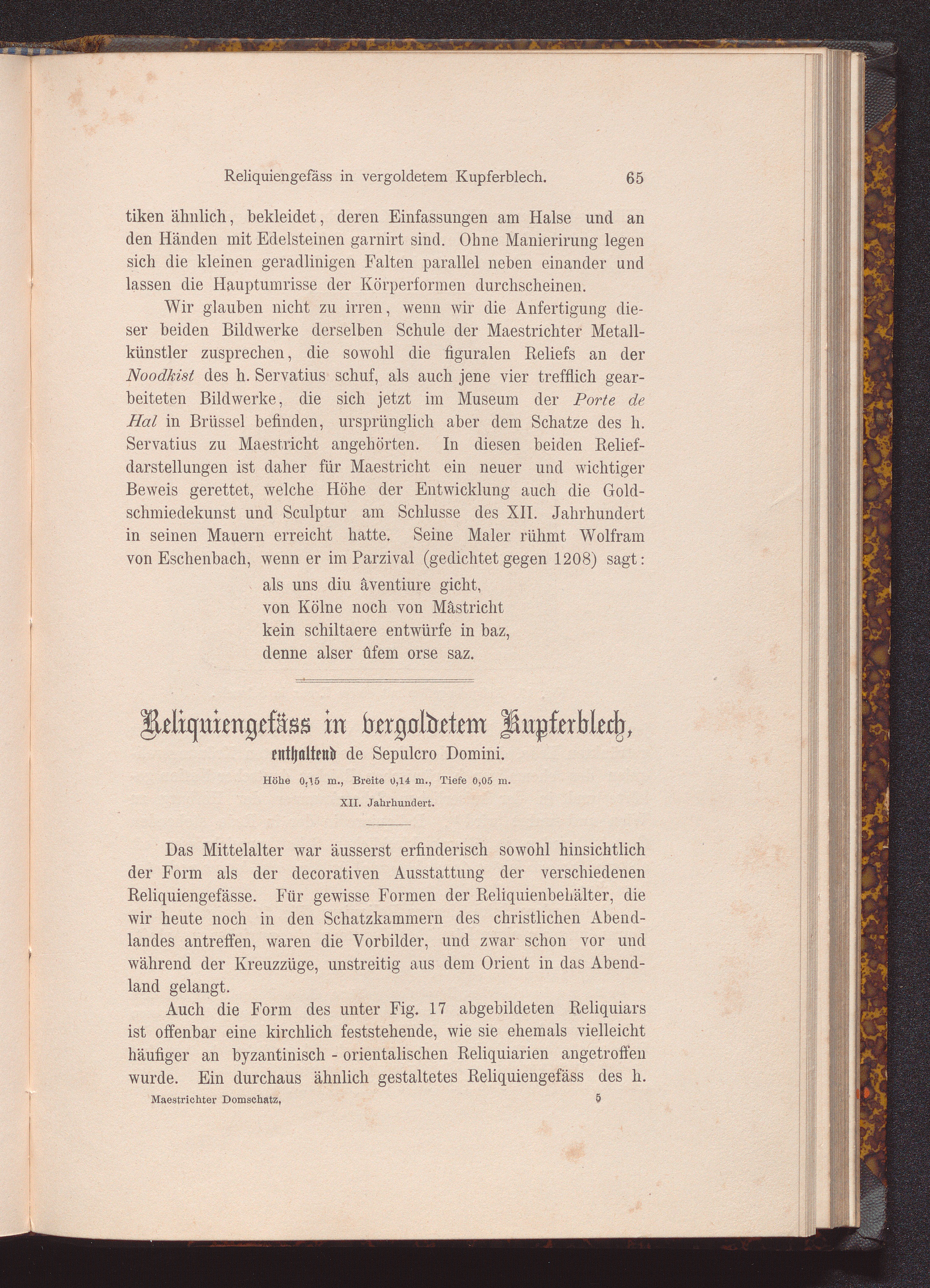 Die mittelalterlichen Kunst- und Reliquienschätze zu Maestricht, aufbewahrt in den ehemaligen Stiftskirchen des h. Servatius und Unserer Lieben Frau daselbst : archäologisch und historisch beschrieben und durch 66 Holzschnitte erläutert / von Franz Bock und M. Willemsen