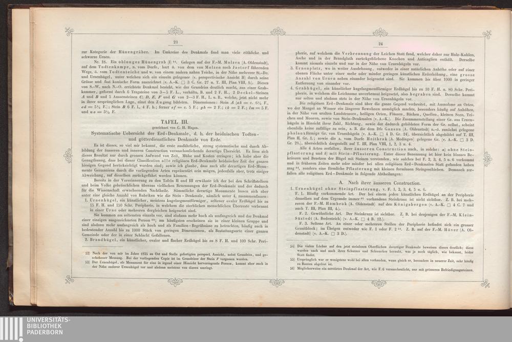 Tafel III. gezeichnet von C. H. Hagen. Systematische Uebersicht der Erd-Denkmale,[...]