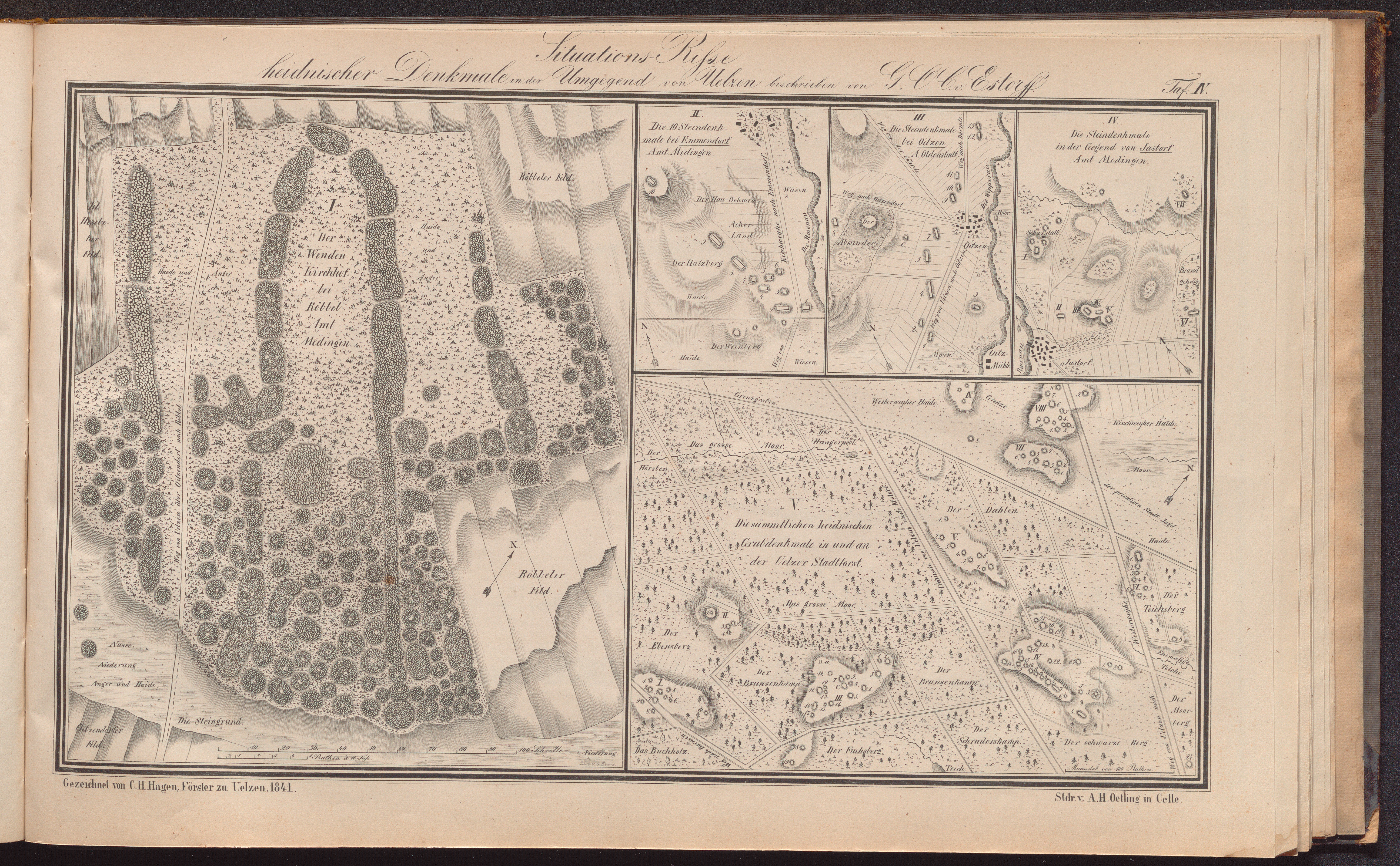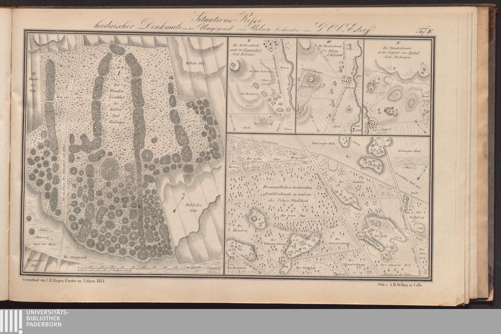 Heidnische Alterthümer der Gegend von Uelzen im ehemaligen Bardengaue (Königreich Hannover) : Mit einem Atlasse von 16 Tafeln und einer illuminirten archäologischen Karte / von G. O. Carl von Estorff