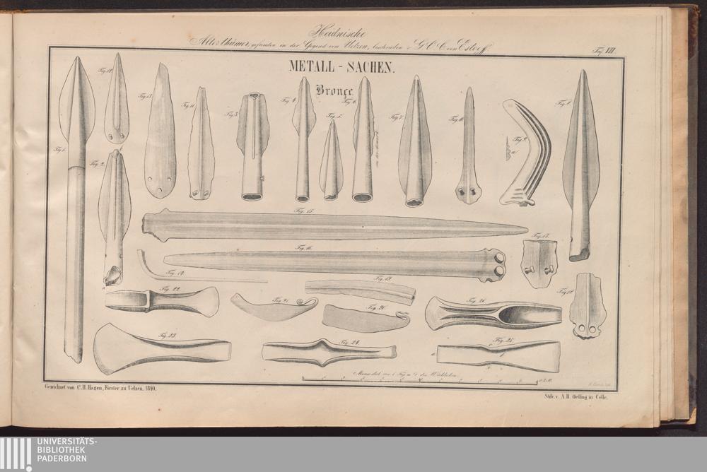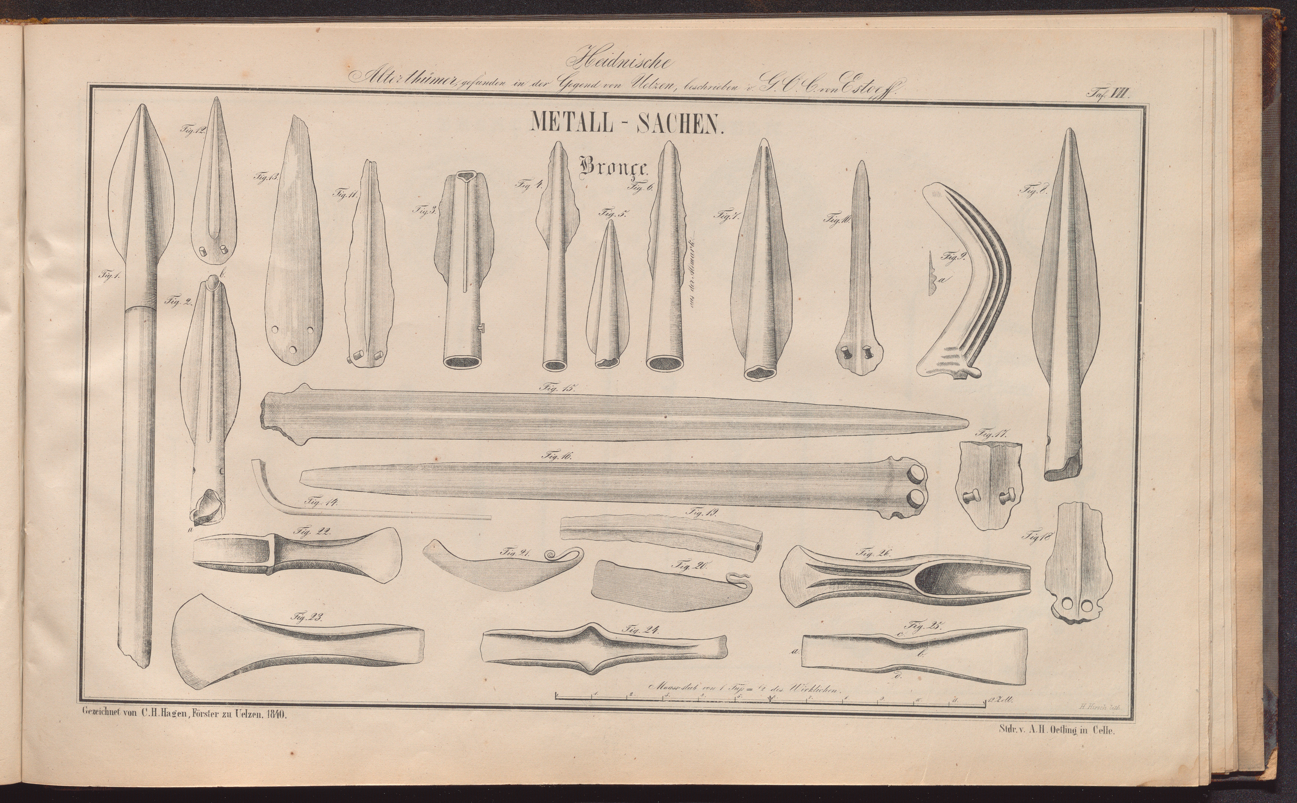 Heidnische Alterthümer der Gegend von Uelzen im ehemaligen Bardengaue (Königreich Hannover) : Mit einem Atlasse von 16 Tafeln und einer illuminirten archäologischen Karte / von G. O. Carl von Estorff