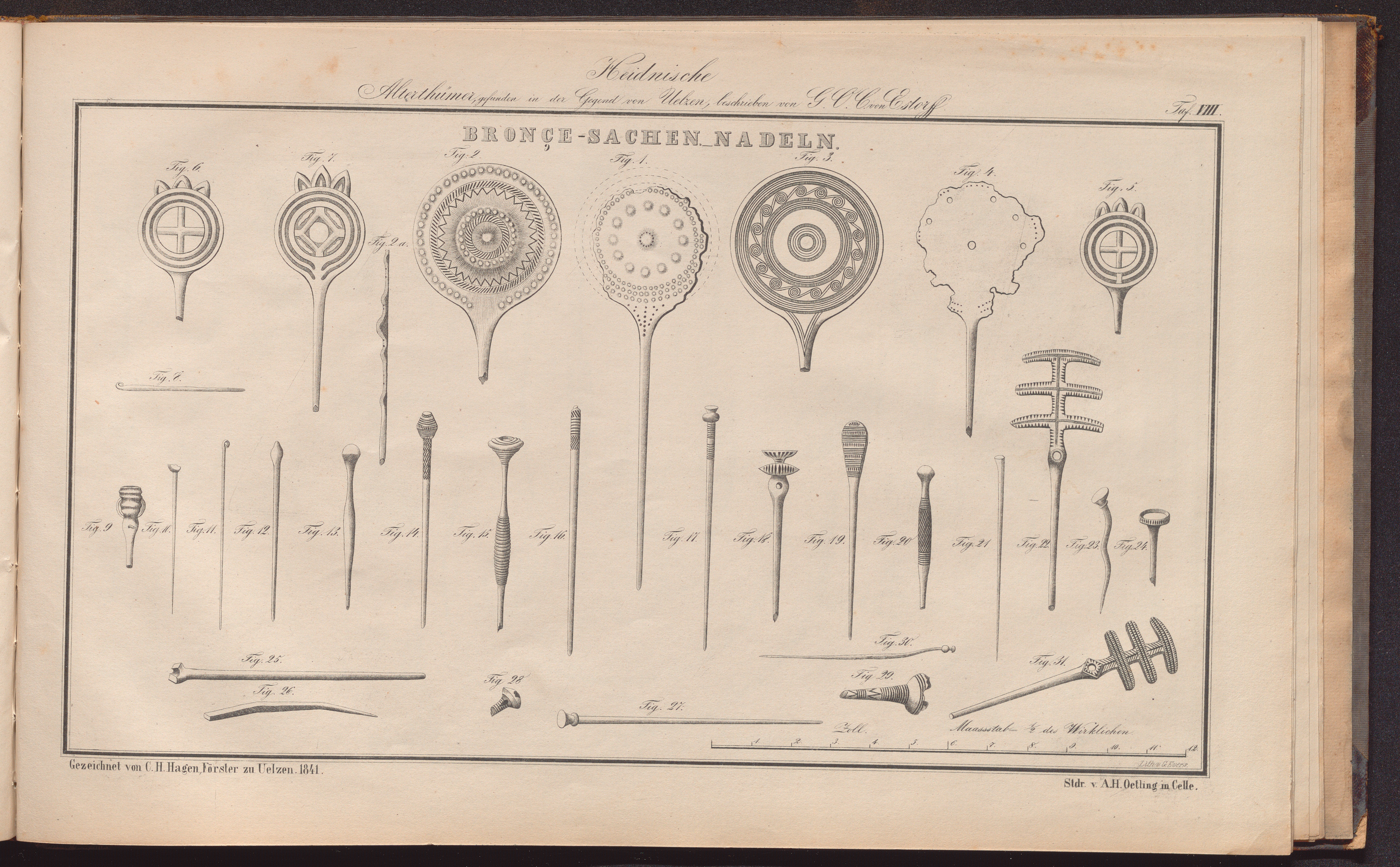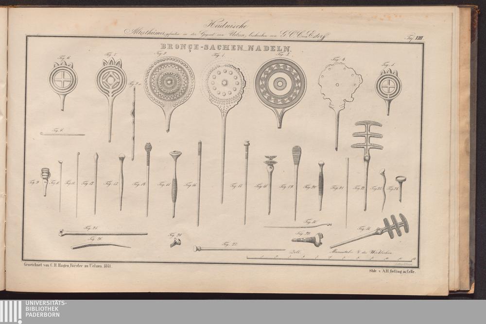 Heidnische Alterthümer der Gegend von Uelzen im ehemaligen Bardengaue (Königreich Hannover) : Mit einem Atlasse von 16 Tafeln und einer illuminirten archäologischen Karte / von G. O. Carl von Estorff