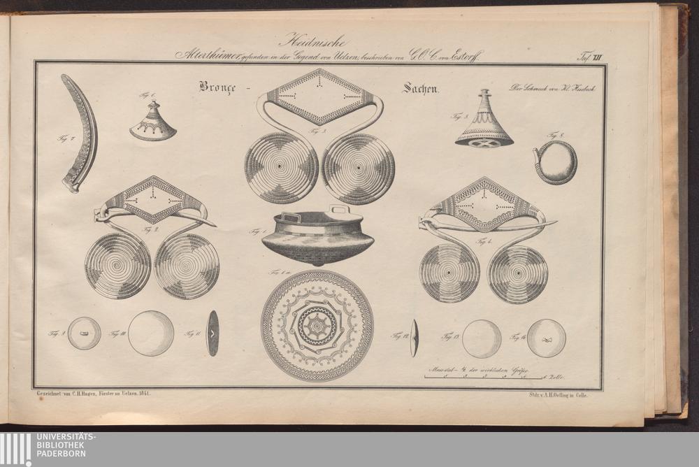 Heidnische Alterthümer der Gegend von Uelzen im ehemaligen Bardengaue (Königreich Hannover) : Mit einem Atlasse von 16 Tafeln und einer illuminirten archäologischen Karte / von G. O. Carl von Estorff