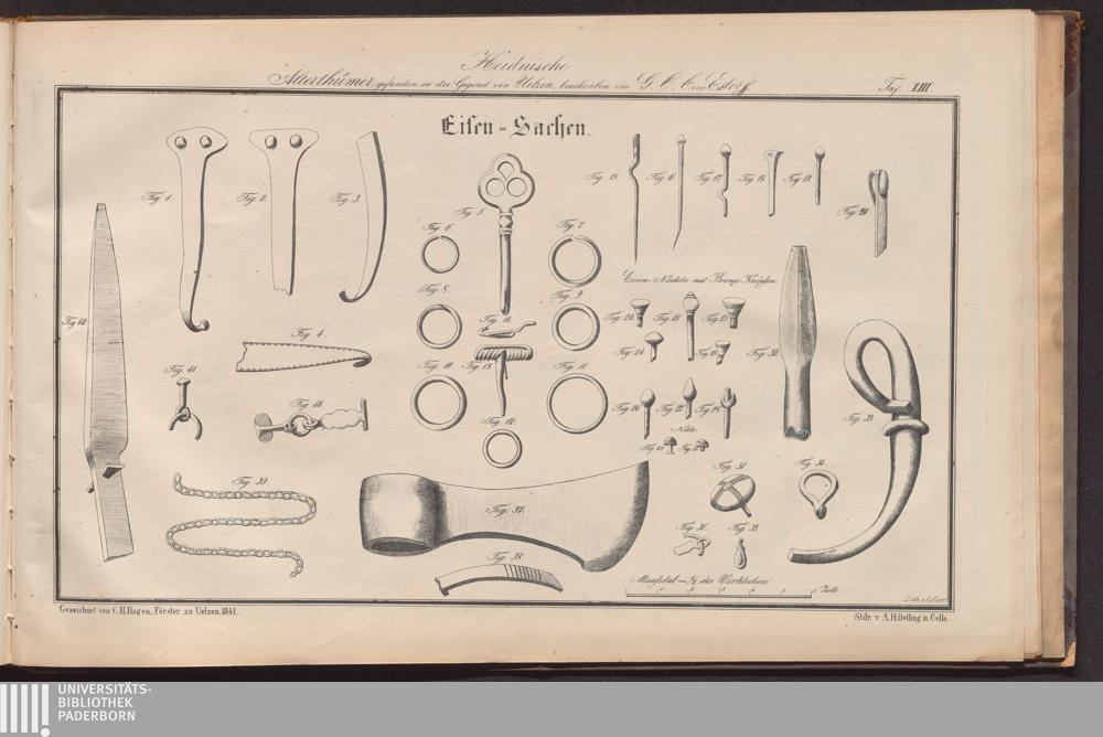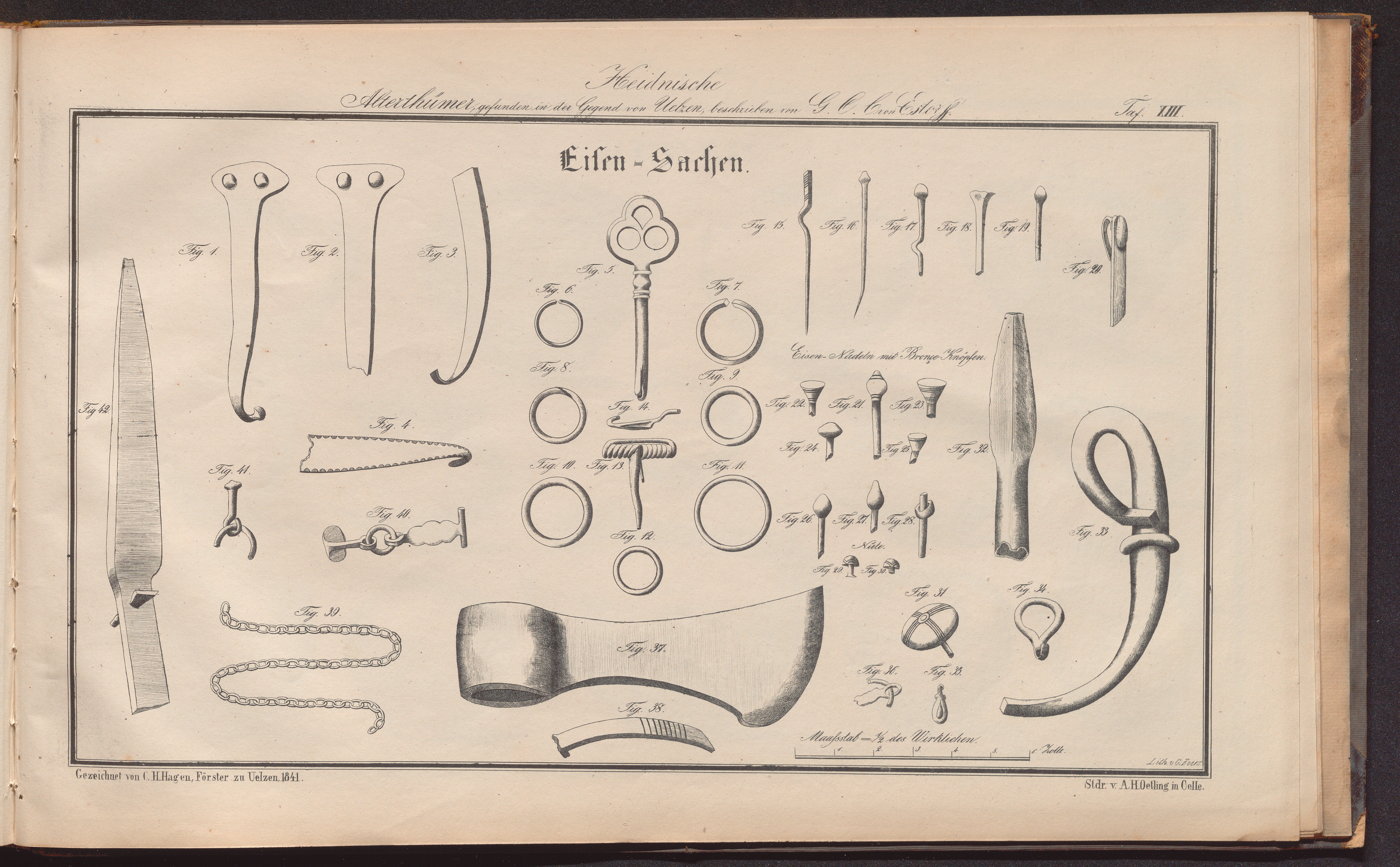 Heidnische Alterthümer der Gegend von Uelzen im ehemaligen Bardengaue (Königreich Hannover) : Mit einem Atlasse von 16 Tafeln und einer illuminirten archäologischen Karte / von G. O. Carl von Estorff