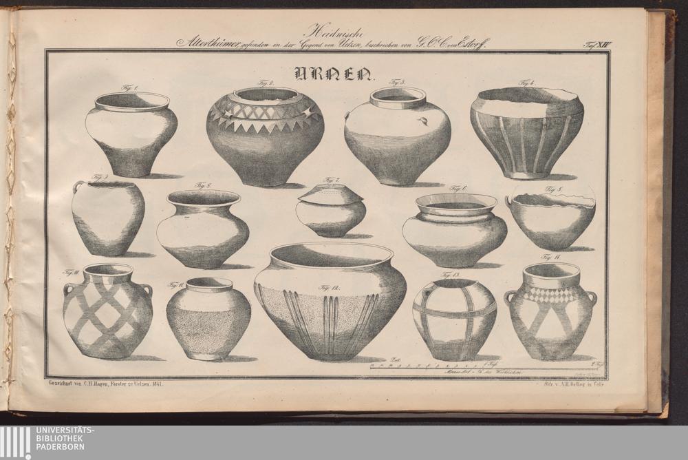 Heidnische Alterthümer der Gegend von Uelzen im ehemaligen Bardengaue (Königreich Hannover) : Mit einem Atlasse von 16 Tafeln und einer illuminirten archäologischen Karte / von G. O. Carl von Estorff