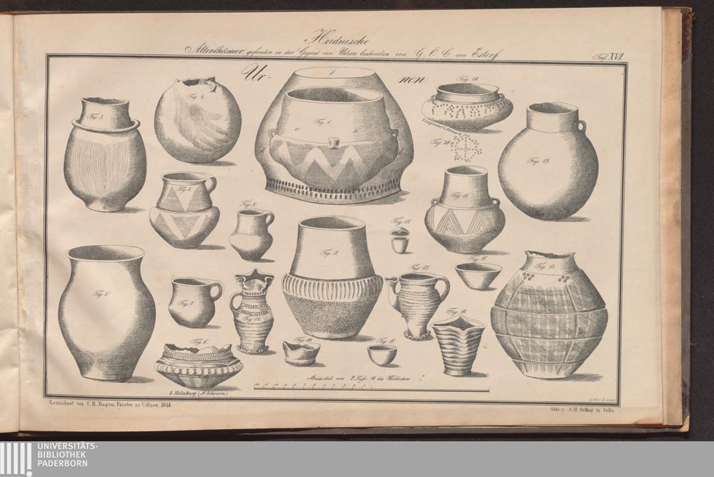 Heidnische Alterthümer der Gegend von Uelzen im ehemaligen Bardengaue (Königreich Hannover) : Mit einem Atlasse von 16 Tafeln und einer illuminirten archäologischen Karte / von G. O. Carl von Estorff