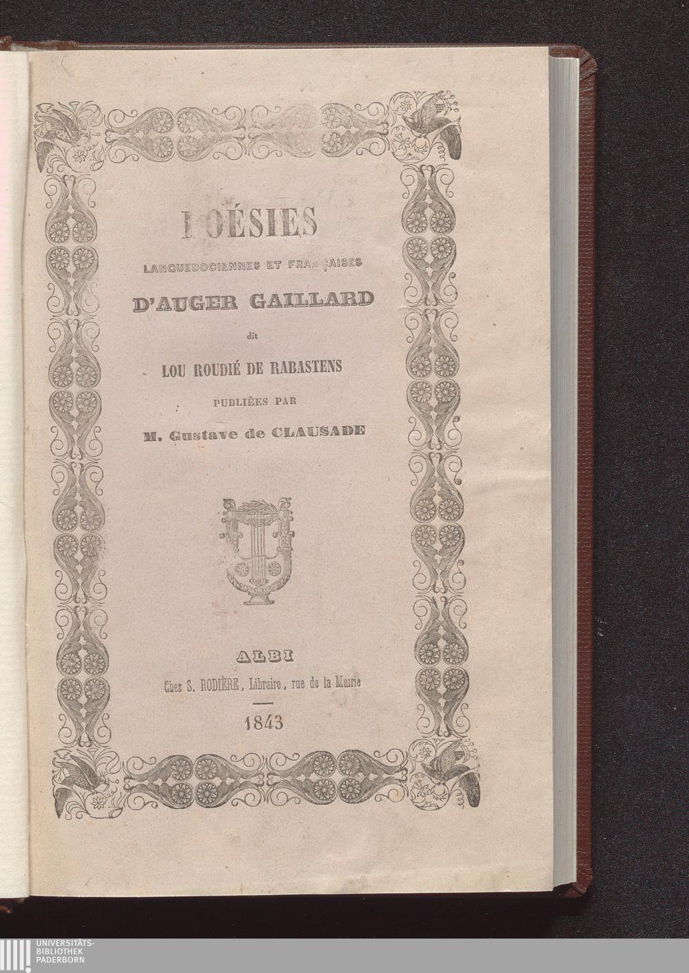 Poésies languedociennes et francaises / d'Auger Gaillard dit lou roudié de rabastens. Publiées par Gustave de Clausade