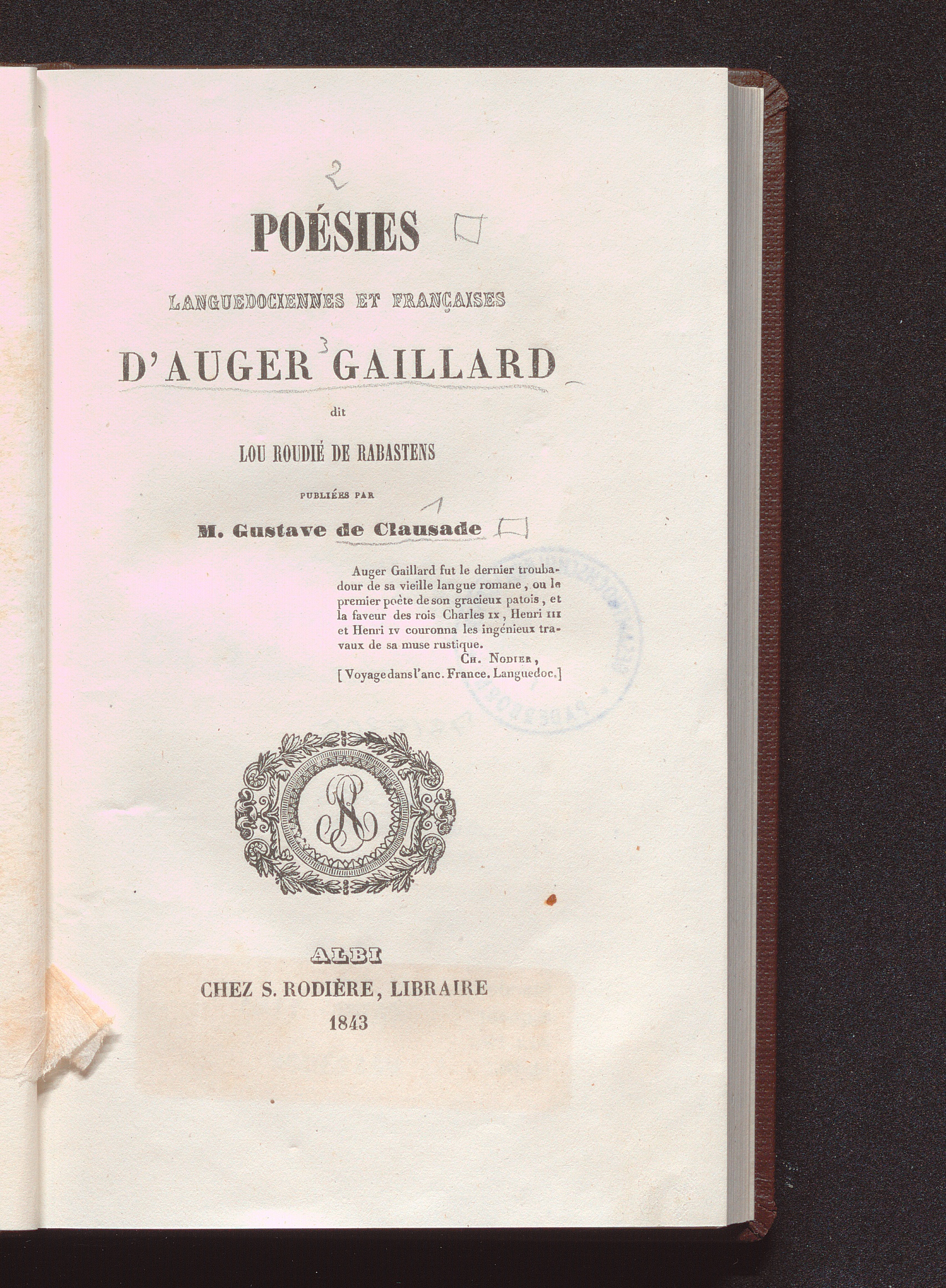 Poésies languedociennes et francaises / d'Auger Gaillard dit lou roudié de rabastens. Publiées par Gustave de Clausade