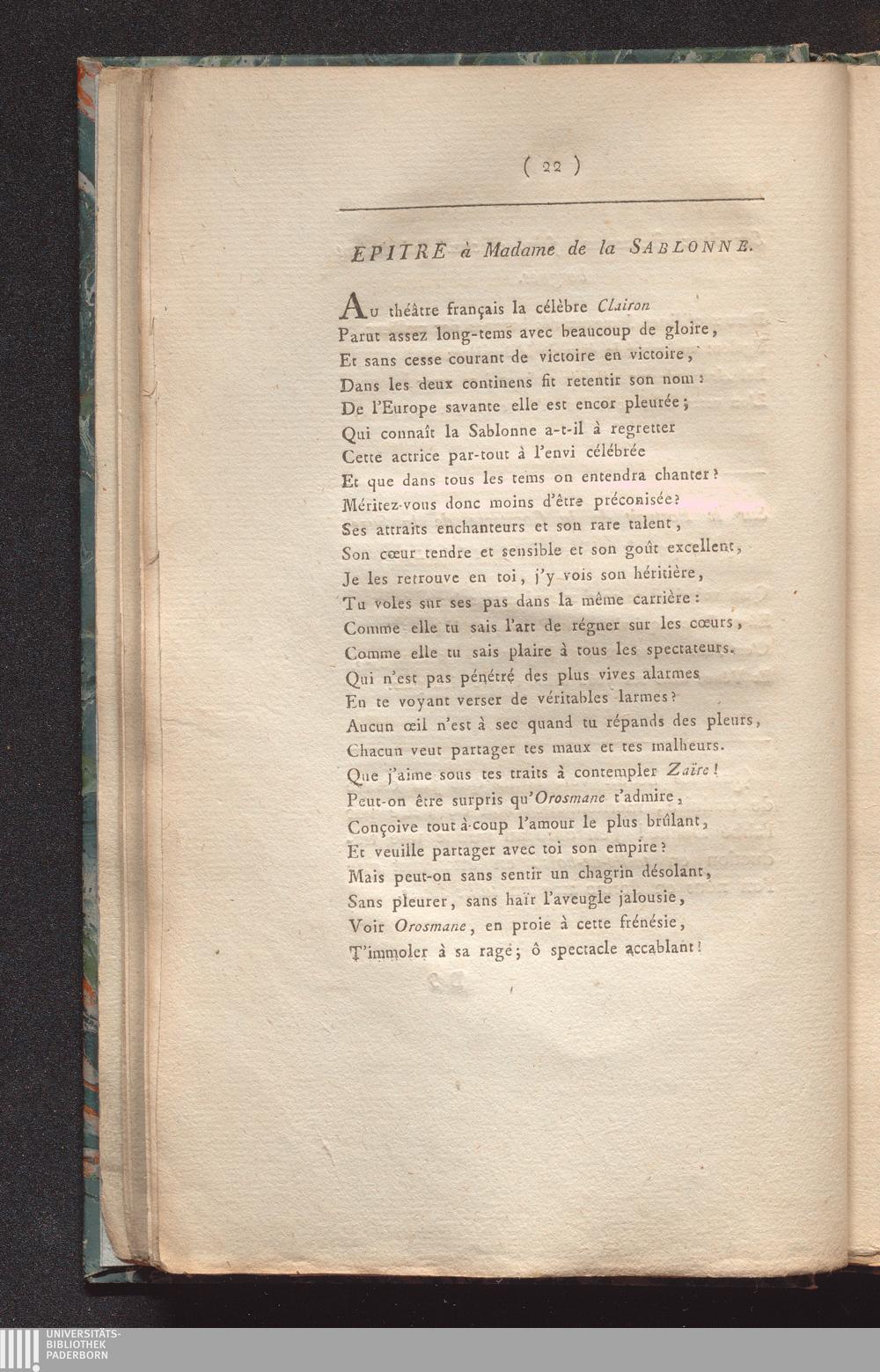 Les infiniment-petits de la littérature, ou huitains, sixains, quatrains et distiques : avec un grand nombre de notes historiques et critiques, sur les hommes-de-lettres les plus marquans de la France, précédés et suivis d'autres bluettes en prose et en vers / par l'ininiment-petit auteur des Délices de Chaufontaine