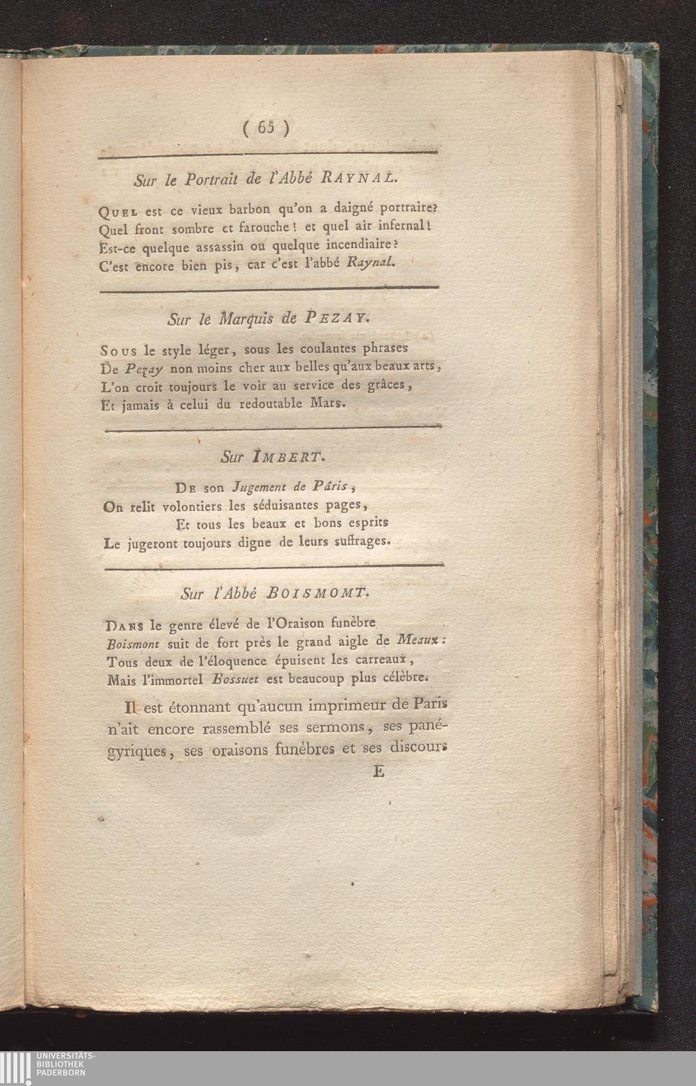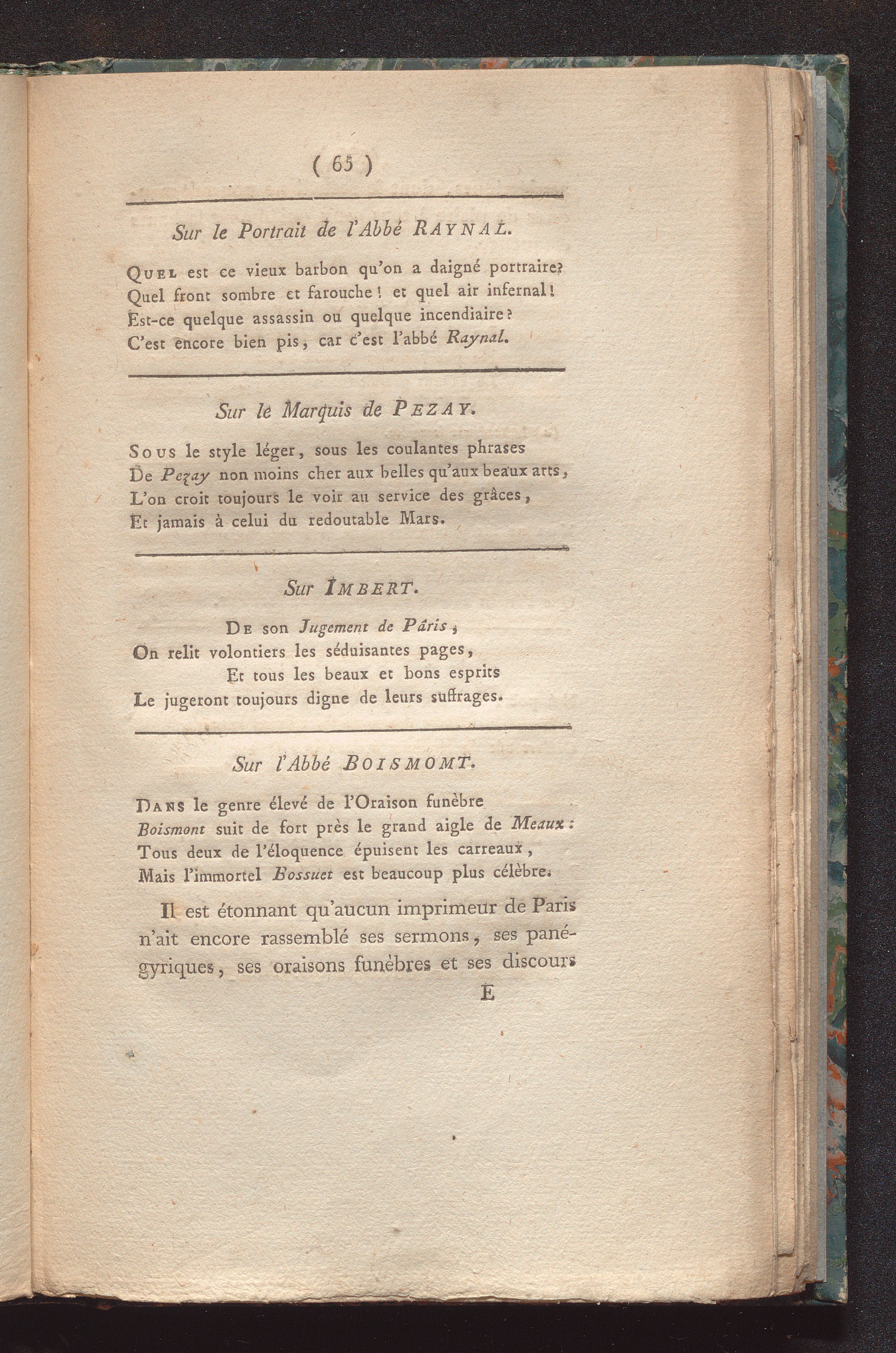 Les infiniment-petits de la littérature, ou huitains, sixains, quatrains et distiques : avec un grand nombre de notes historiques et critiques, sur les hommes-de-lettres les plus marquans de la France, précédés et suivis d'autres bluettes en prose et en vers / par l'ininiment-petit auteur des Délices de Chaufontaine