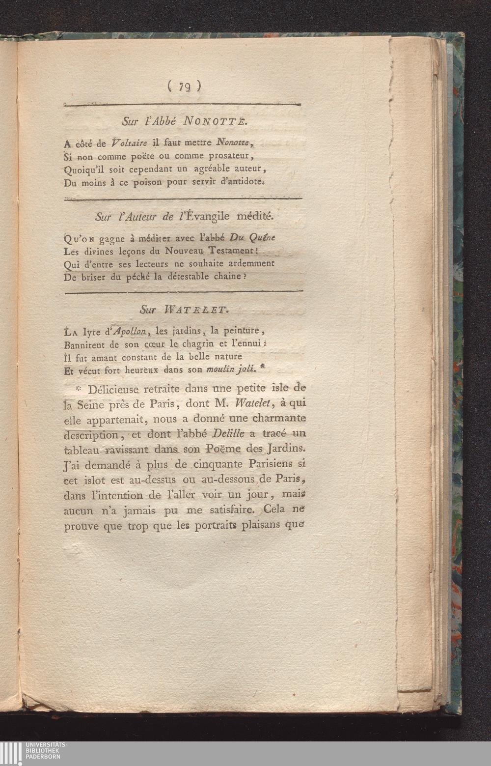 Les infiniment-petits de la littérature, ou huitains, sixains, quatrains et distiques : avec un grand nombre de notes historiques et critiques, sur les hommes-de-lettres les plus marquans de la France, précédés et suivis d'autres bluettes en prose et en vers / par l'ininiment-petit auteur des Délices de Chaufontaine