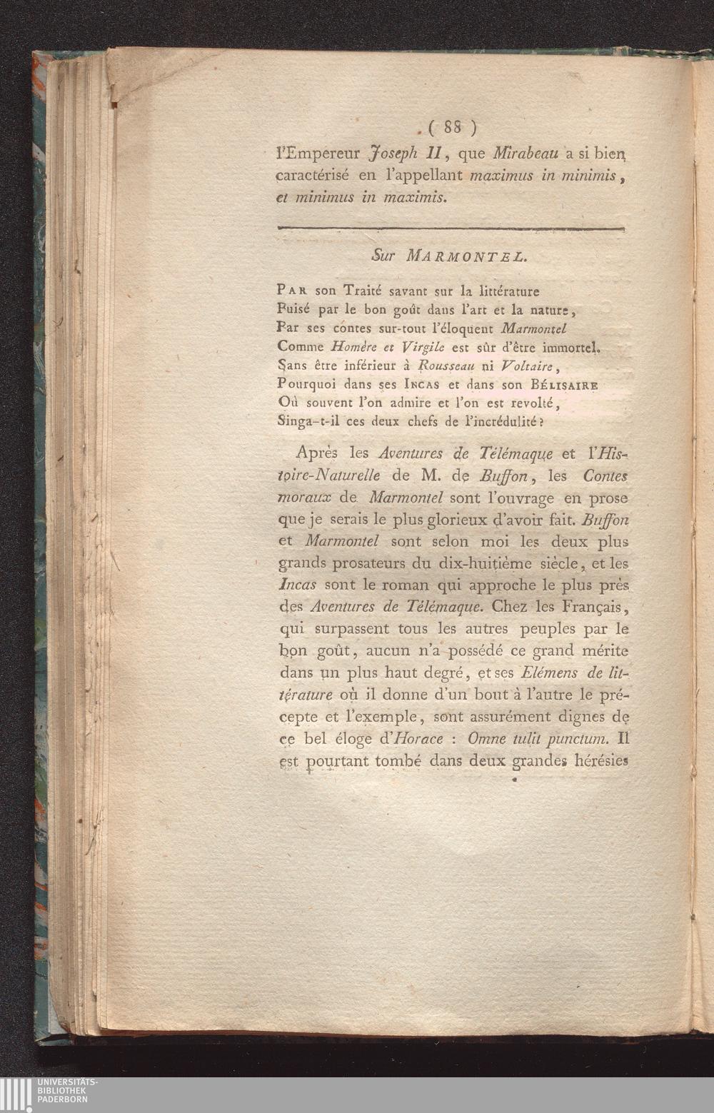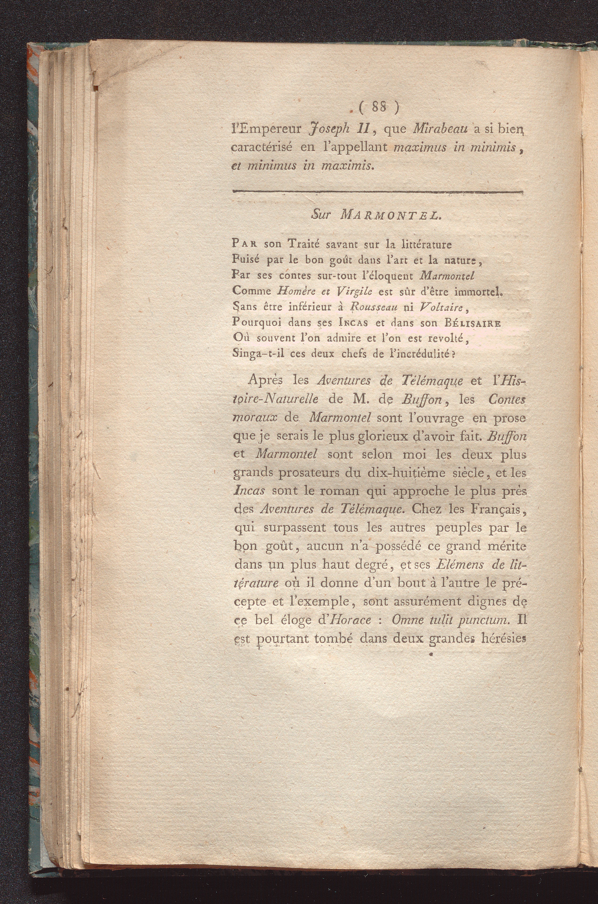 Les infiniment-petits de la littérature, ou huitains, sixains, quatrains et distiques : avec un grand nombre de notes historiques et critiques, sur les hommes-de-lettres les plus marquans de la France, précédés et suivis d'autres bluettes en prose et en vers / par l'ininiment-petit auteur des Délices de Chaufontaine