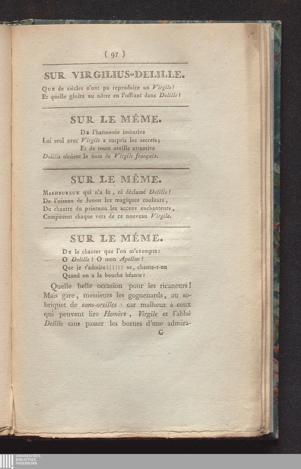 Les infiniment-petits de la littérature, ou huitains, sixains, quatrains et distiques : avec un grand nombre de notes historiques et critiques, sur les hommes-de-lettres les plus marquans de la France, précédés et suivis d'autres bluettes en prose et en vers / par l'ininiment-petit auteur des Délices de Chaufontaine