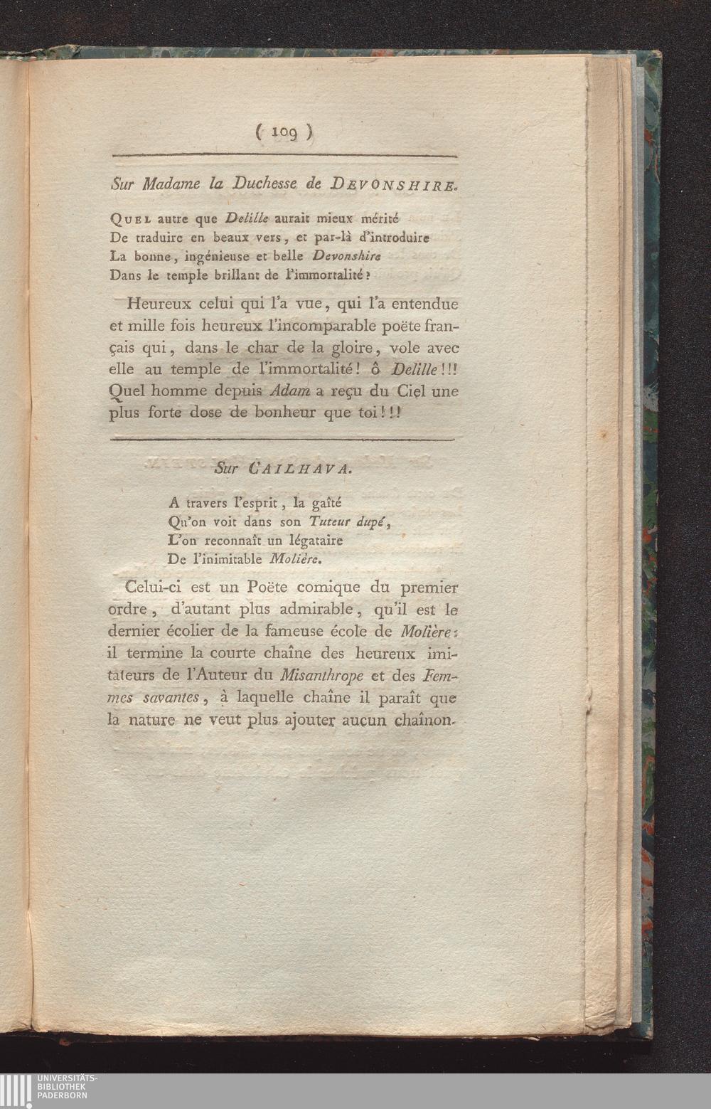 Les infiniment-petits de la littérature, ou huitains, sixains, quatrains et distiques : avec un grand nombre de notes historiques et critiques, sur les hommes-de-lettres les plus marquans de la France, précédés et suivis d'autres bluettes en prose et en vers / par l'ininiment-petit auteur des Délices de Chaufontaine