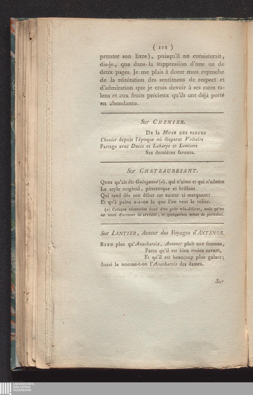 Les infiniment-petits de la littérature, ou huitains, sixains, quatrains et distiques : avec un grand nombre de notes historiques et critiques, sur les hommes-de-lettres les plus marquans de la France, précédés et suivis d'autres bluettes en prose et en vers / par l'ininiment-petit auteur des Délices de Chaufontaine