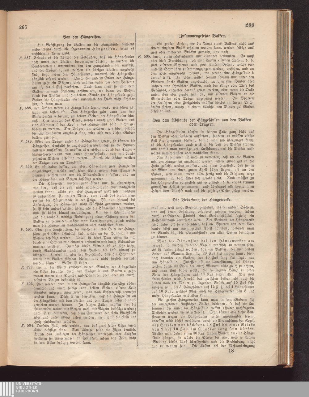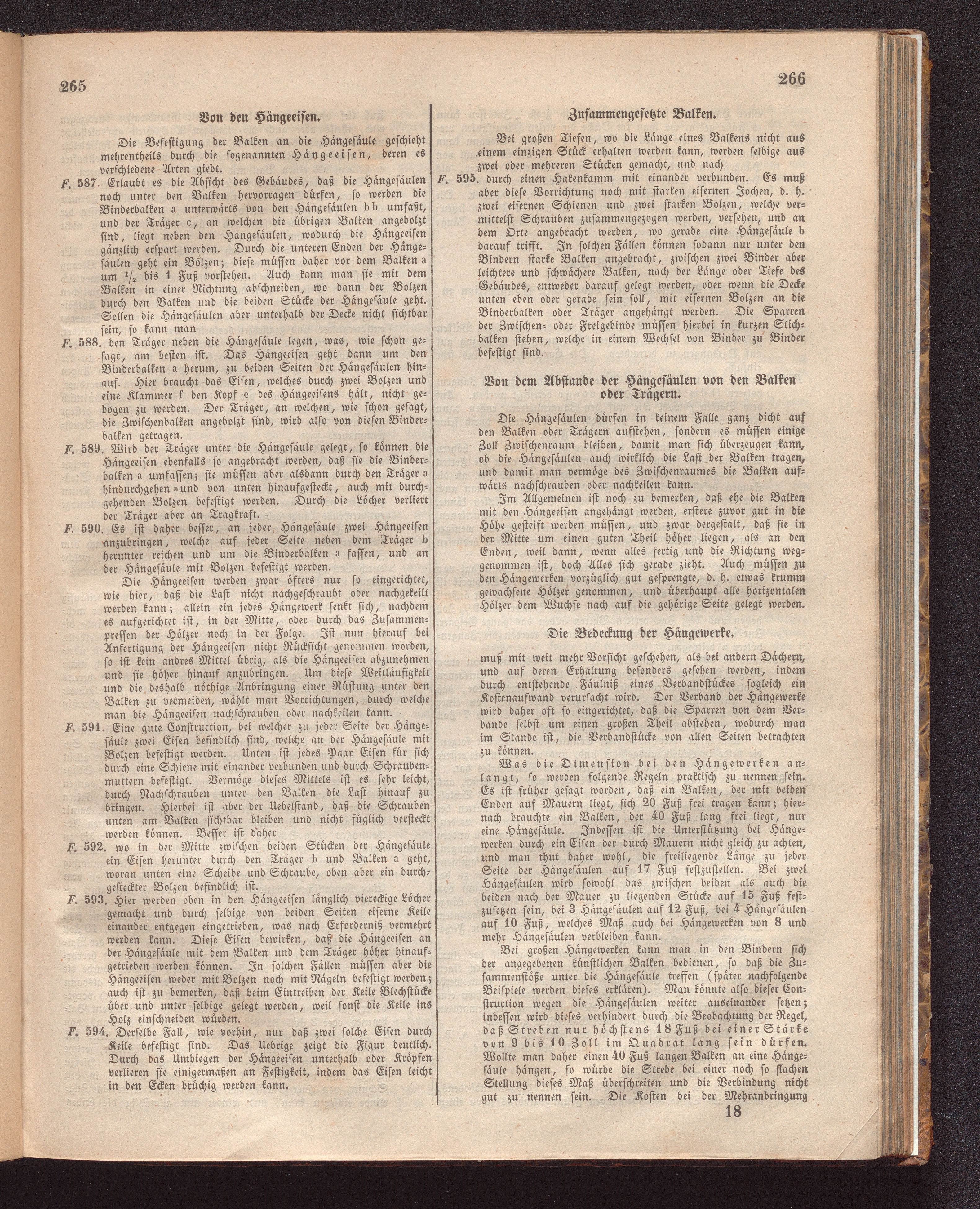 Von dem Abstande der Hängesäulen von den Balken oder Trägern.