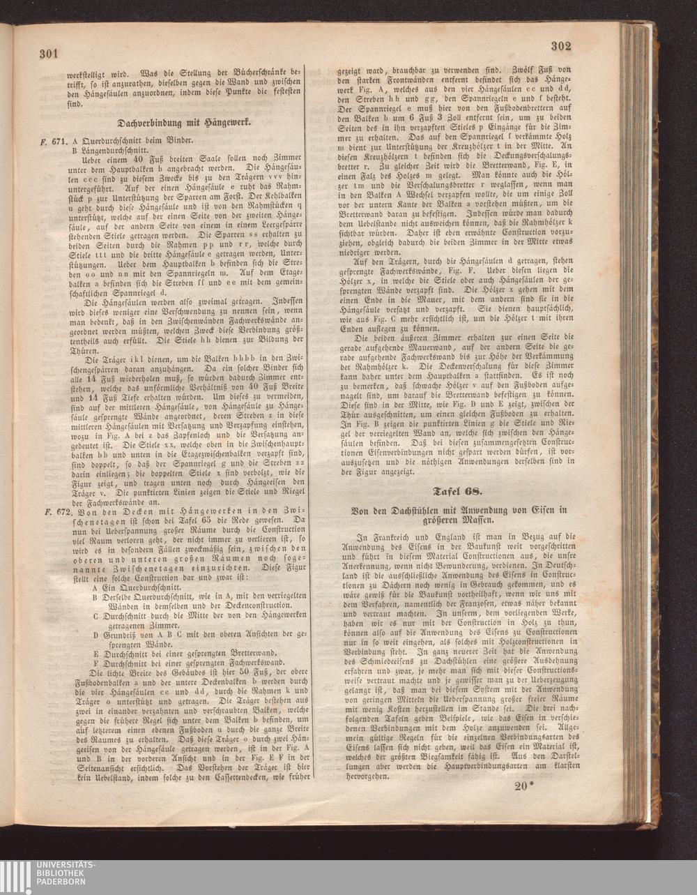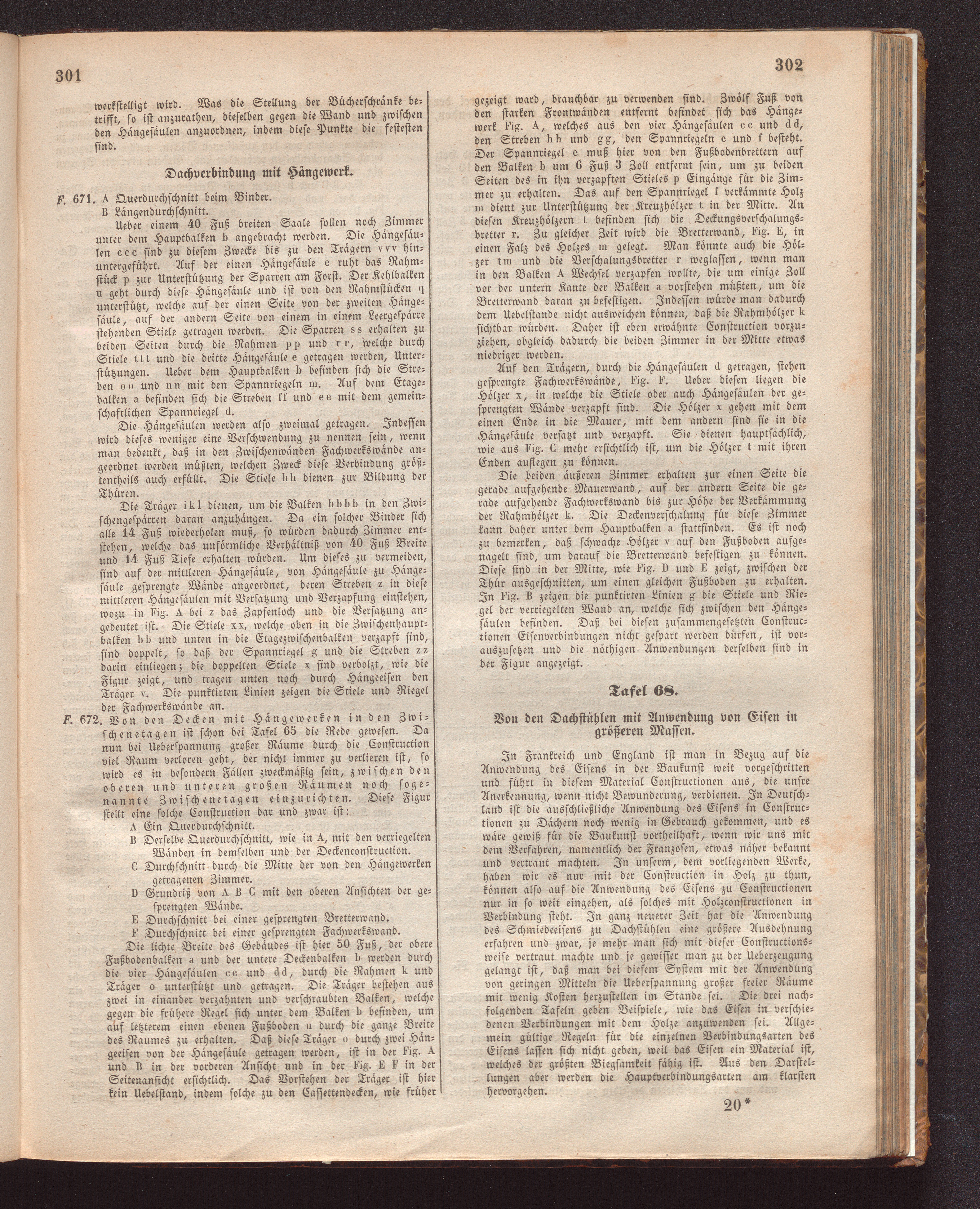 Tafel 68. Von den Dachstühlen mit Anwendung von Eisen in größeren Massen.
