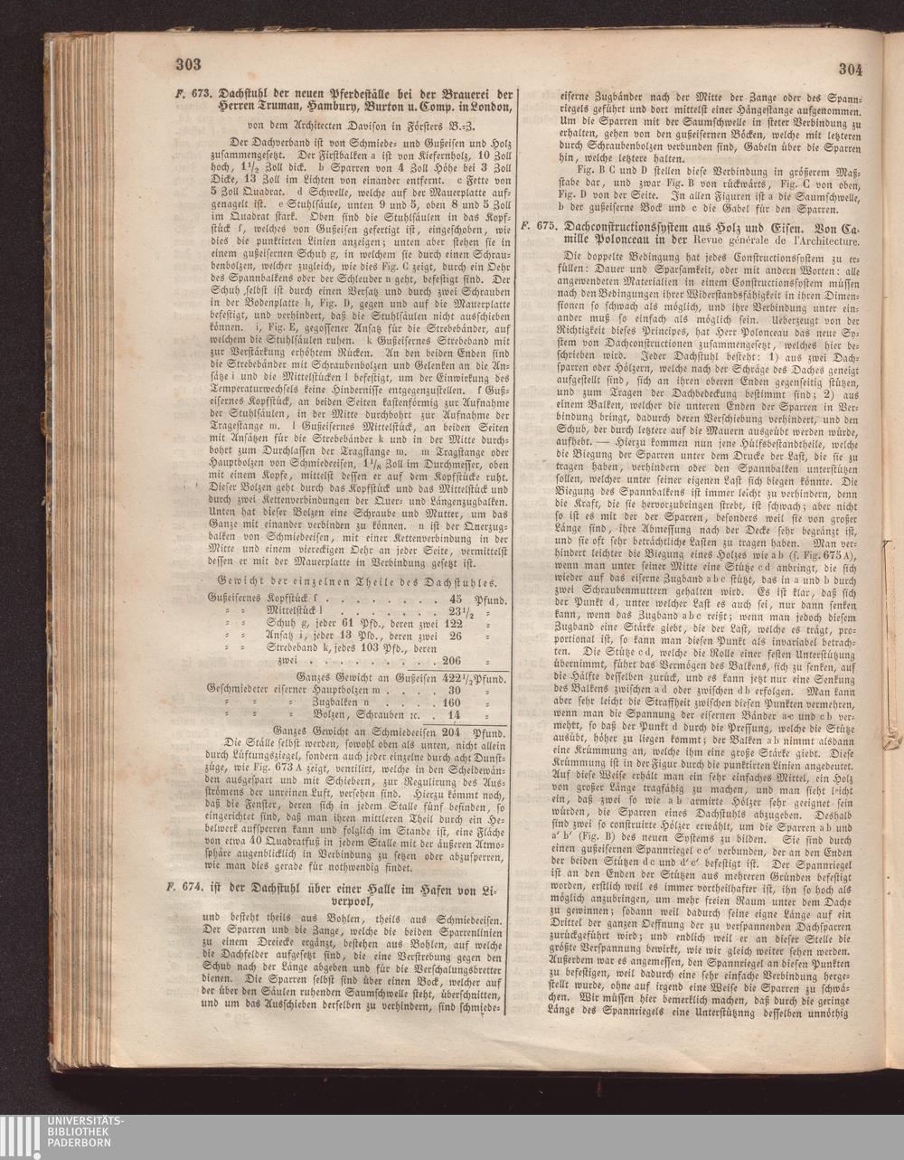 F. 675. Dachconstructionssystem aus Holz und Eisen. Von Camille Polonceau in der[...]