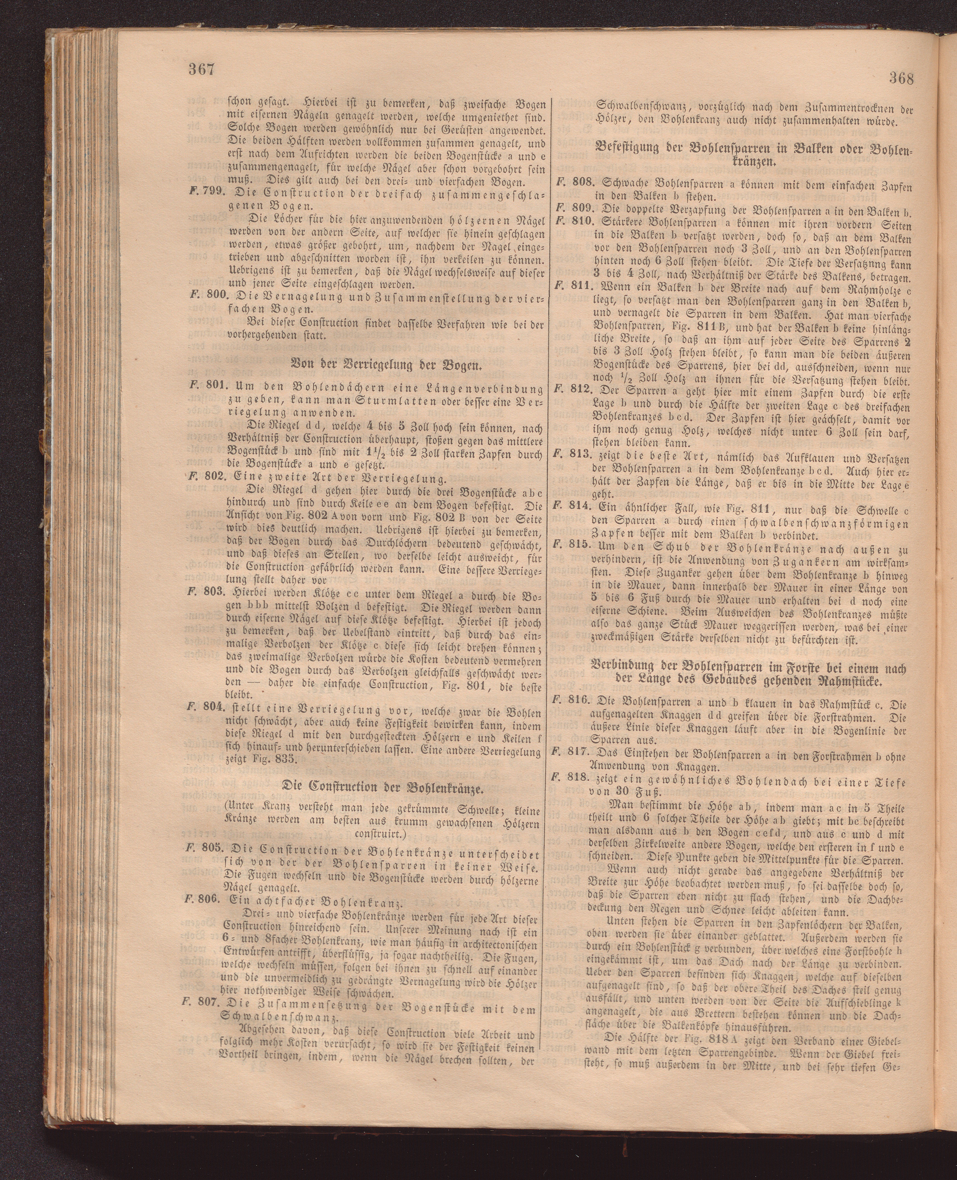 Verbindung der Bohlensparren im Forste bei einem nach der Länge des Gebäudes gehenden[...]