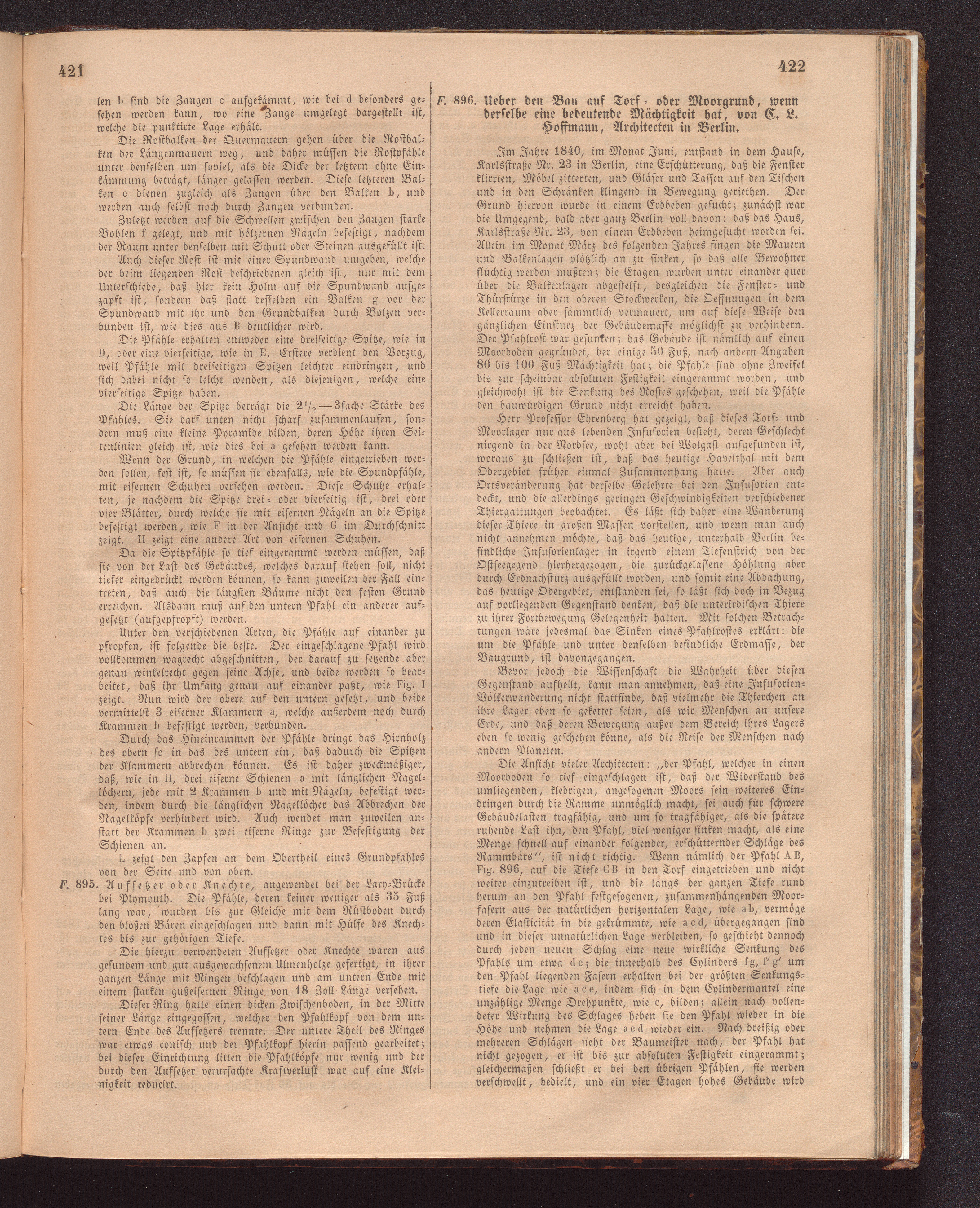 F. 896. Ueber den Bau auf Torf- oder Moorgrund, wenn derselbe eine bedeutende Mächtigkeit[...]
