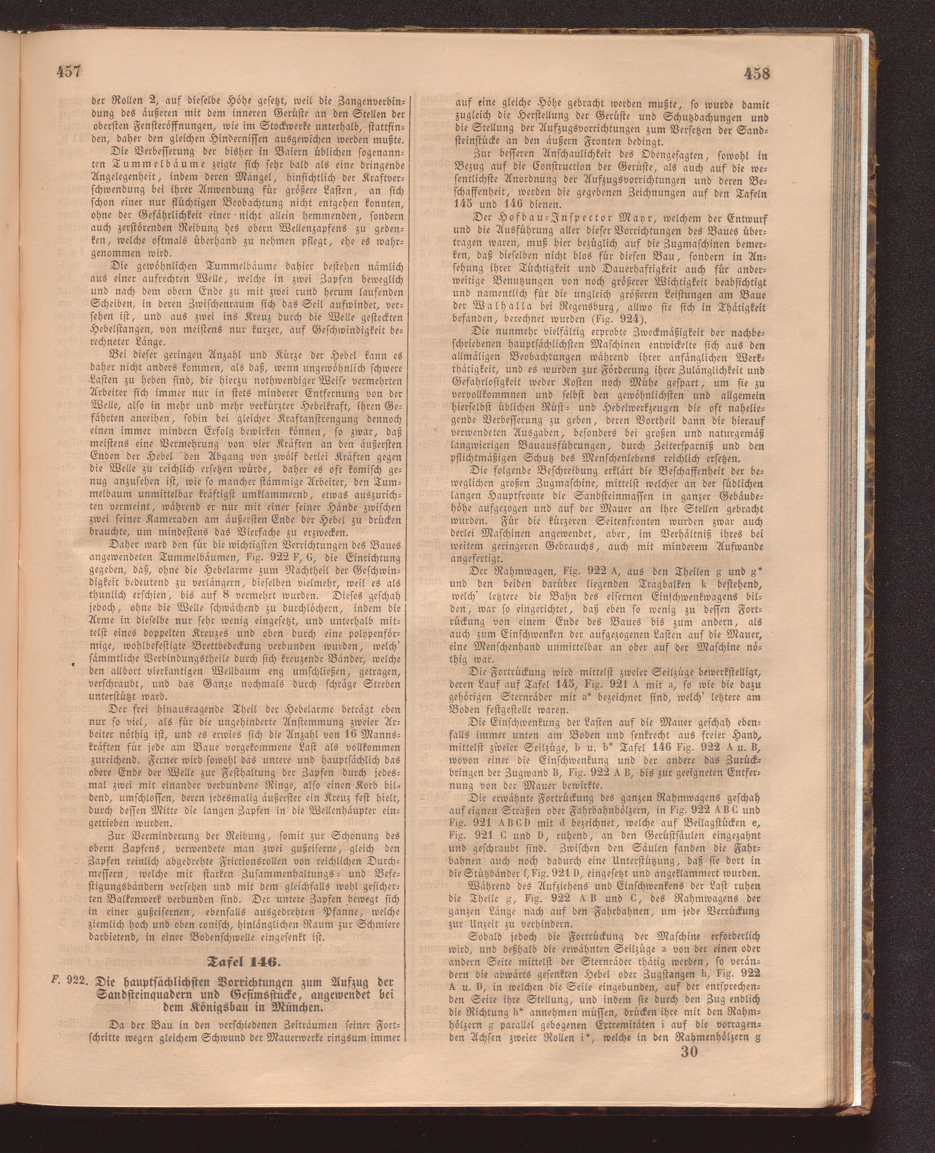 Tafel 146. F. 922. Die hauptsächlichen Vorrichtungen zum Aufzug der Sandsteinquadern[...]