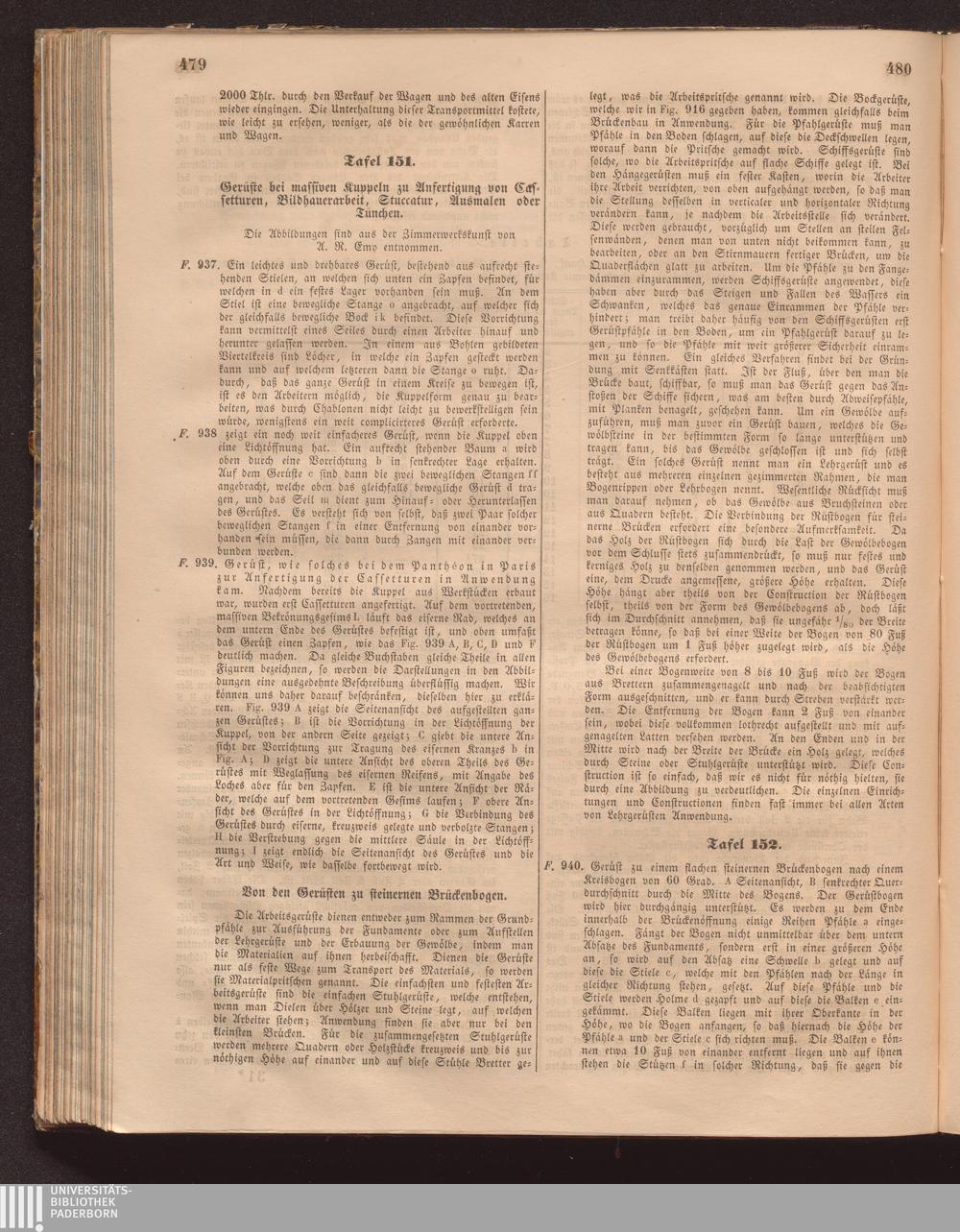 Tafel 151. Gerüste bei massiven Kuppeln zu Anfertigung von Cassetturen, Bildhauerarbeit,[...]