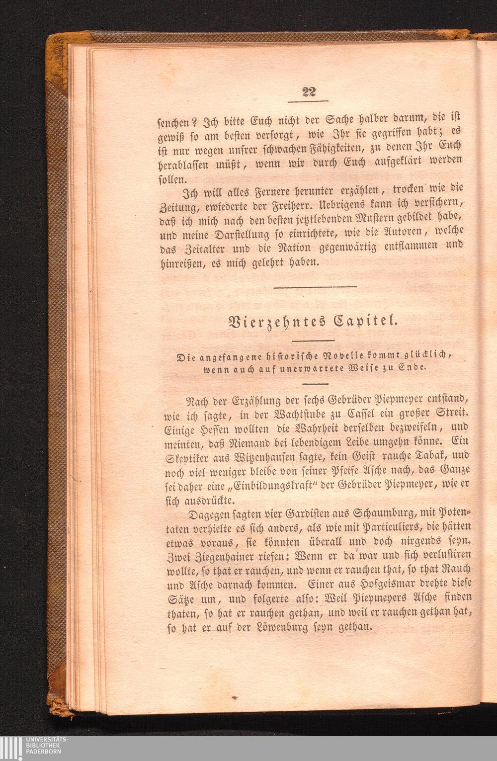 Vierzehntes Capitel. Die angefangene historische Novelle kommt glücklich, wenn auch[...]
