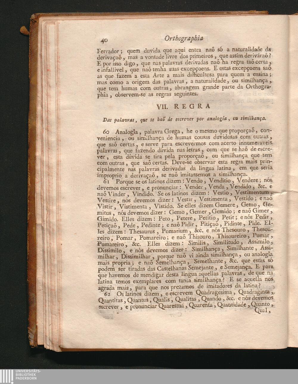 Orthographia, Ou Arte De Escrever, E Pronunciar Com Acerto A Lingua Portugueza : Divide-Se Em Tres Partes, A primeira, de cada huma das letras, e da sua pronunciacaõ. Das vogaes, e dithongos. Des accentos, ou tons da pronunciacaõ. A segunda de como se dividem as palavras. Da pontuacaõ, algumas abbreviaturas, conta dos Romanos, e Latinos, Calendas, Nonas, e Idos. A terceira dos erros do vulgo, e emendas da Orthographia, no escrever, e pronunciar toda a lingua Portugueza, verbos irregulares, palavras dubias, e as suas significações. Huma breve instrucçaõ para os Mestres das Escólas / Pelo Seu Mestre Joaõ De Moraes Madureira Feijo, Presbytero do Habito de S. Pedro, Bacharet em Theologia, e Prégador