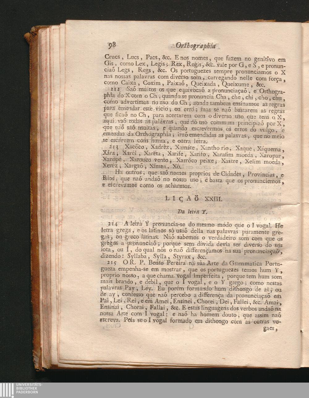 Orthographia, Ou Arte De Escrever, E Pronunciar Com Acerto A Lingua Portugueza : Divide-Se Em Tres Partes, A primeira, de cada huma das letras, e da sua pronunciacaõ. Das vogaes, e dithongos. Des accentos, ou tons da pronunciacaõ. A segunda de como se dividem as palavras. Da pontuacaõ, algumas abbreviaturas, conta dos Romanos, e Latinos, Calendas, Nonas, e Idos. A terceira dos erros do vulgo, e emendas da Orthographia, no escrever, e pronunciar toda a lingua Portugueza, verbos irregulares, palavras dubias, e as suas significações. Huma breve instrucçaõ para os Mestres das Escólas / Pelo Seu Mestre Joaõ De Moraes Madureira Feijo, Presbytero do Habito de S. Pedro, Bacharet em Theologia, e Prégador