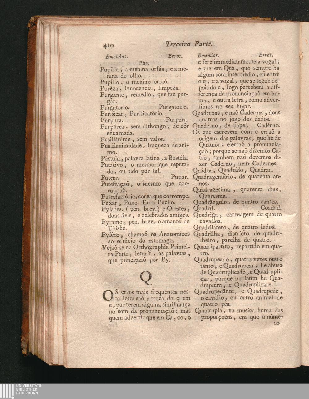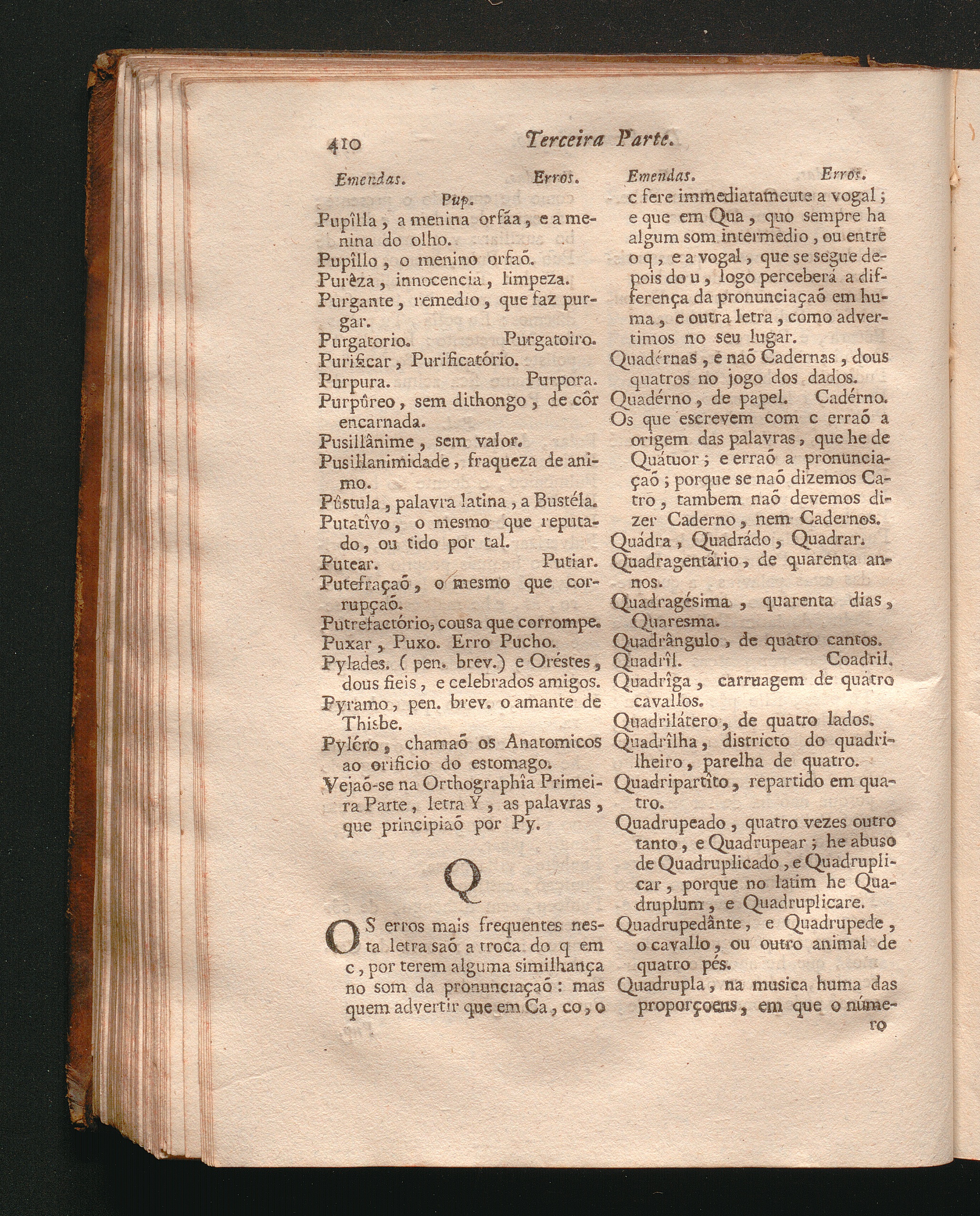 Orthographia, Ou Arte De Escrever, E Pronunciar Com Acerto A Lingua Portugueza : Divide-Se Em Tres Partes, A primeira, de cada huma das letras, e da sua pronunciacaõ. Das vogaes, e dithongos. Des accentos, ou tons da pronunciacaõ. A segunda de como se dividem as palavras. Da pontuacaõ, algumas abbreviaturas, conta dos Romanos, e Latinos, Calendas, Nonas, e Idos. A terceira dos erros do vulgo, e emendas da Orthographia, no escrever, e pronunciar toda a lingua Portugueza, verbos irregulares, palavras dubias, e as suas significações. Huma breve instrucçaõ para os Mestres das Escólas / Pelo Seu Mestre Joaõ De Moraes Madureira Feijo, Presbytero do Habito de S. Pedro, Bacharet em Theologia, e Prégador