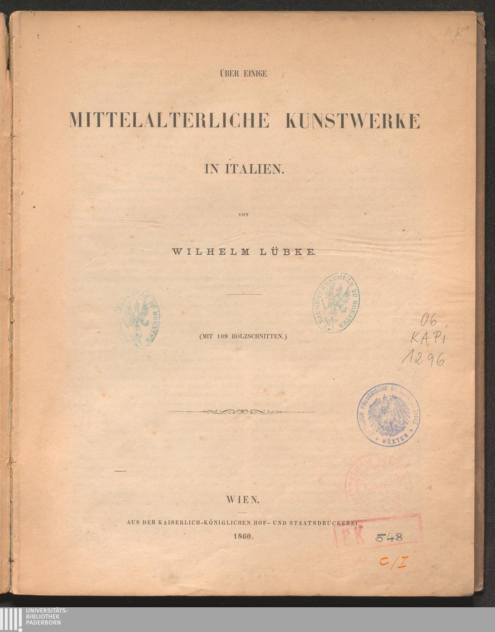 Über einige mittelalterliche Kunstwerke in Italien / von Wilhelm Lübke