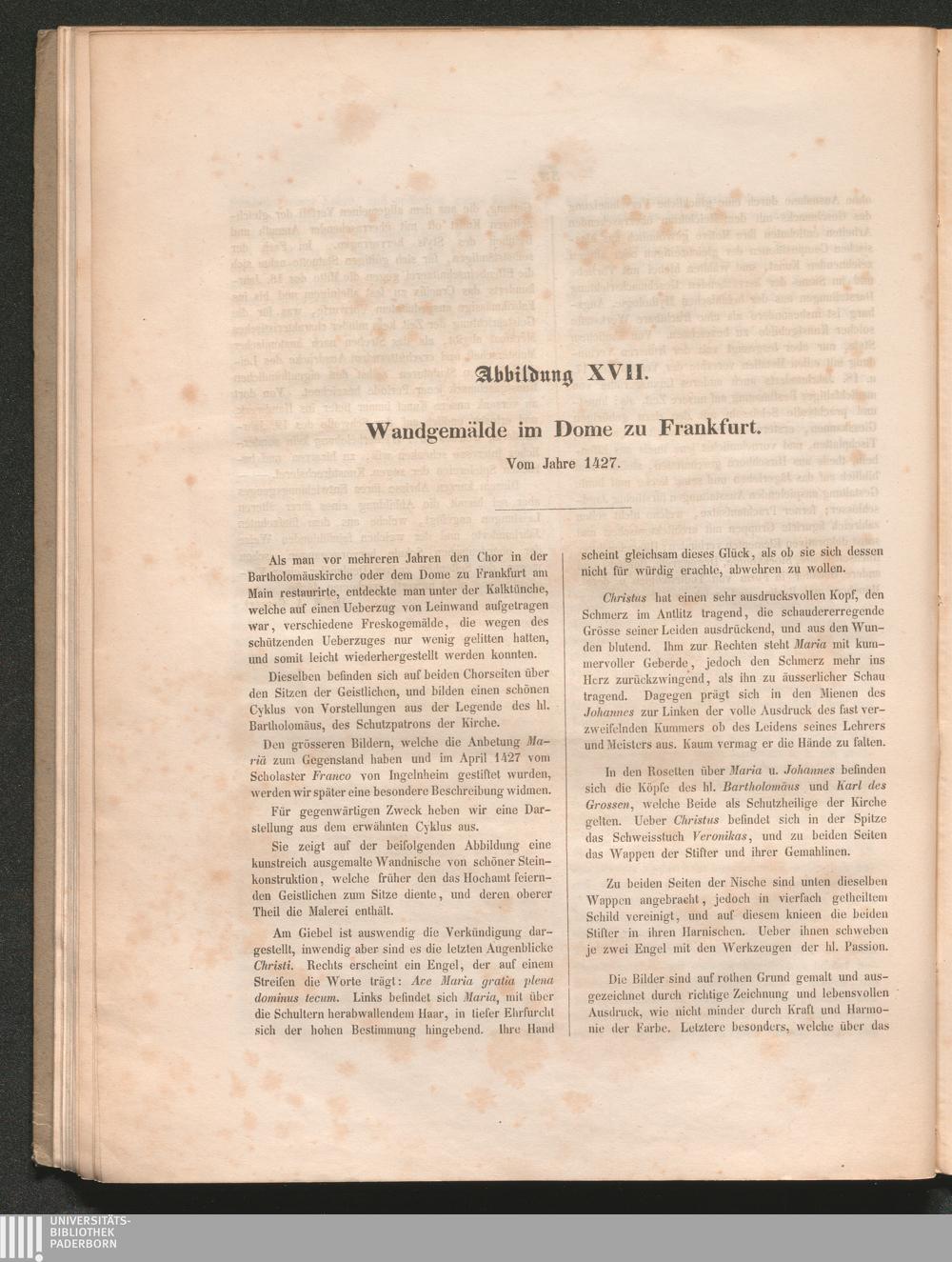 Abbildung XVII. Wandgemälde im Dome zu Frankfurt. Vom Jahre 1427.