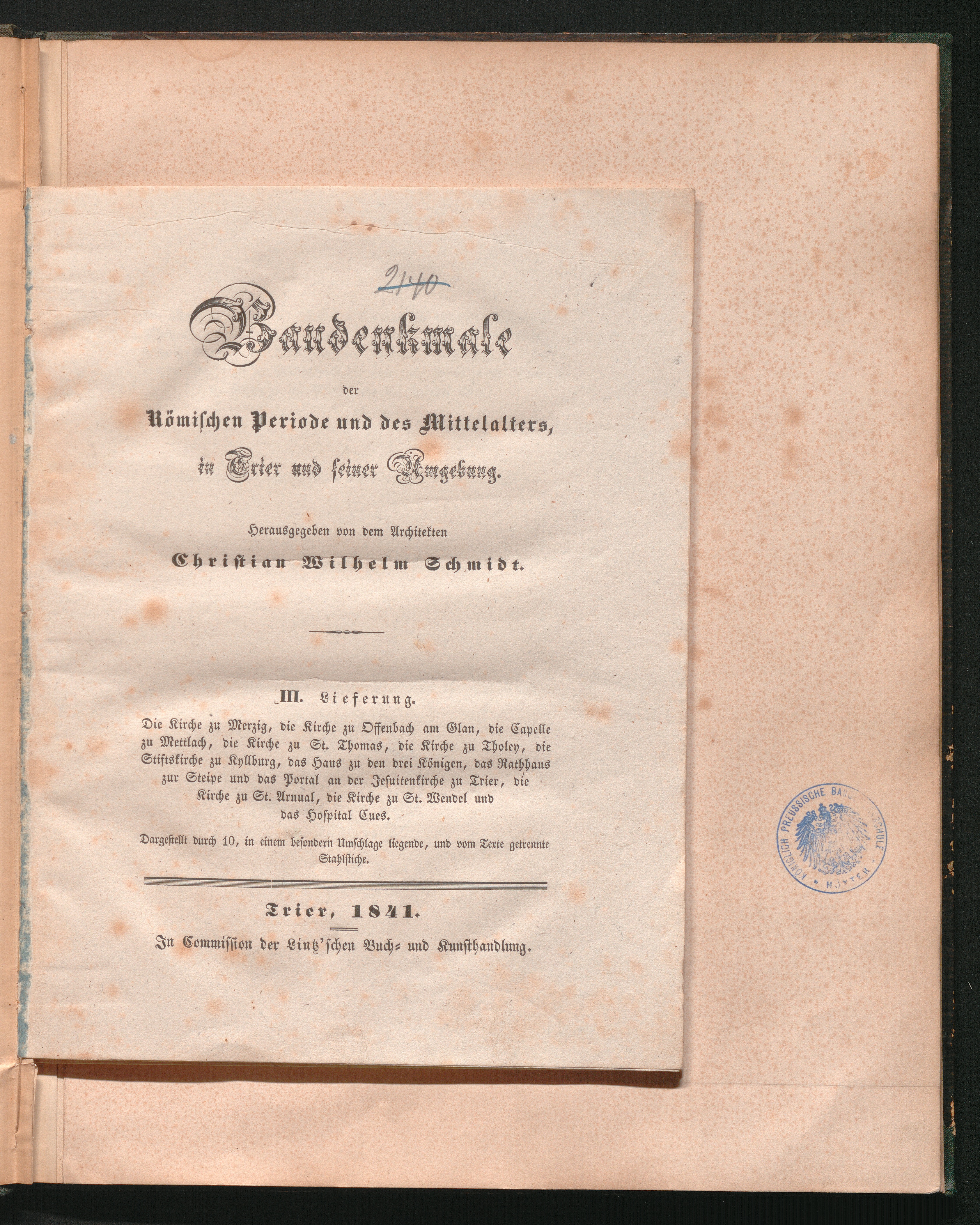 Lfg. 3, Die Kirche zu Merzig, die Kirche zu Offenbach am Glan, die Capelle zu Mettlach, die Kirche zu St. Thomas ... Stahlstiche (1841)