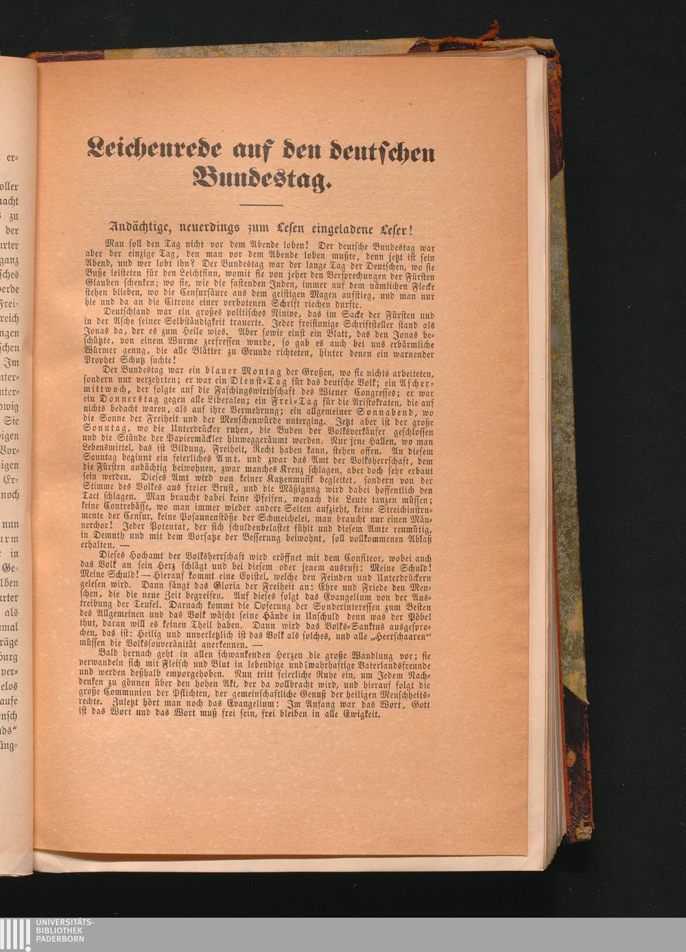 Leichenrede auf den deutschen Bundestag. (Amtsrichter Speerschneider Stadt=Ilm)