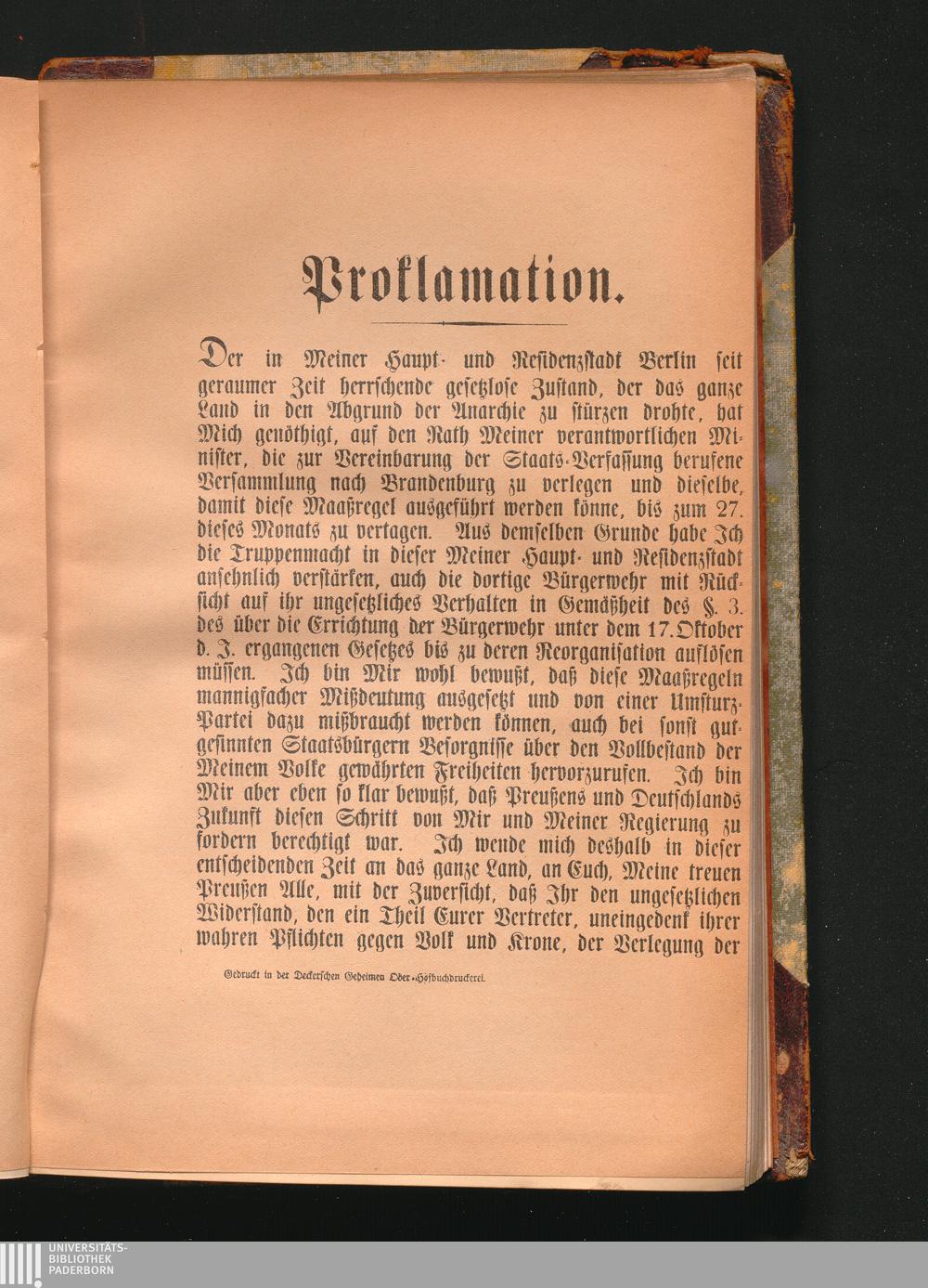 Proklamation vom 11. November 1848.