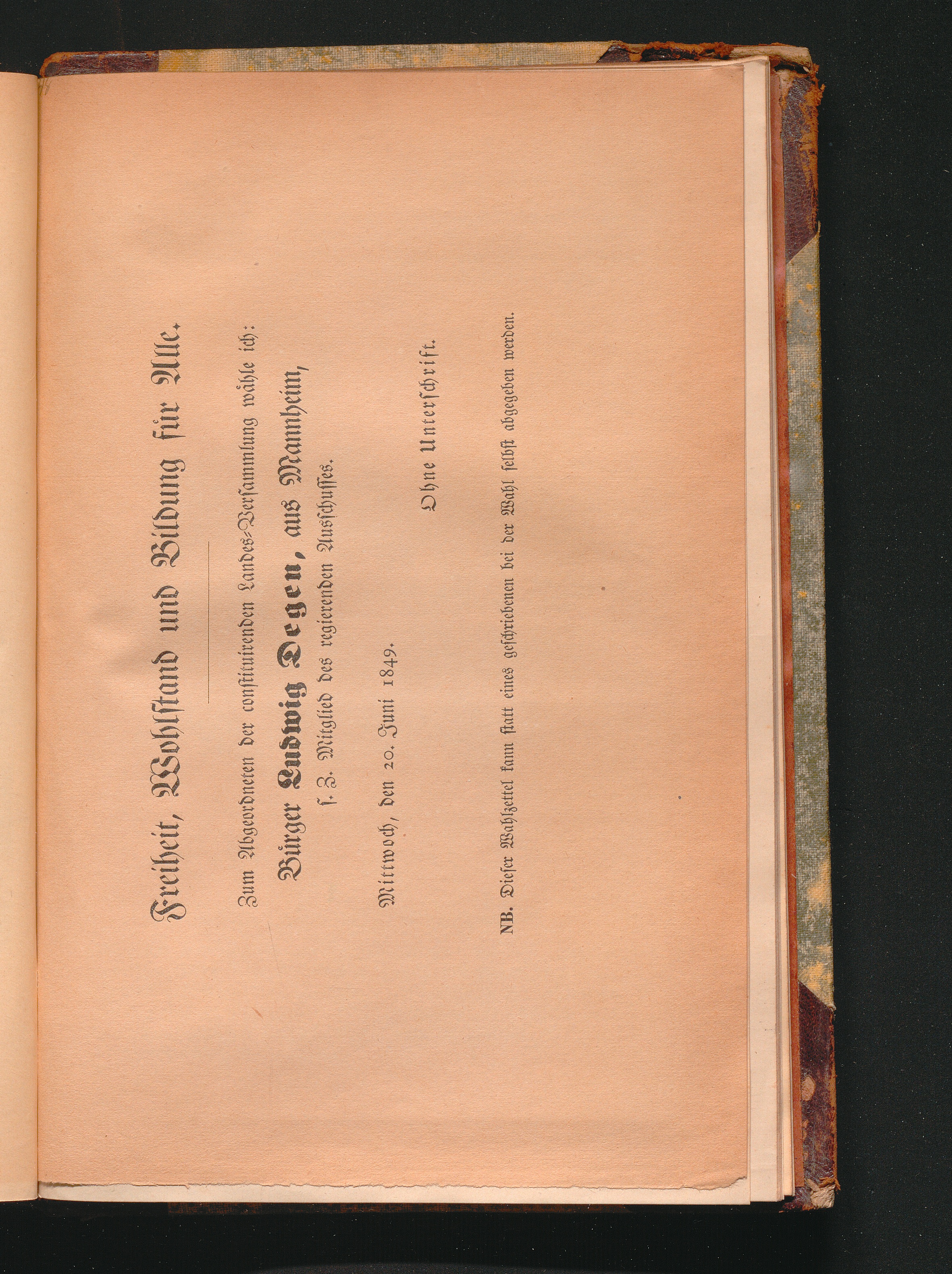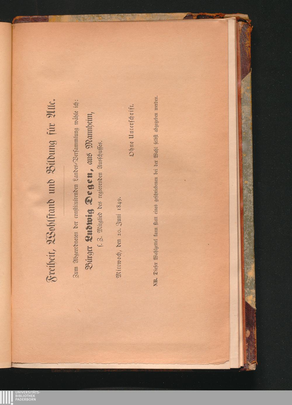 Wahlzettel zur constituirenden Landes-Versammlung. (Mannheimer Altertumsverein.)