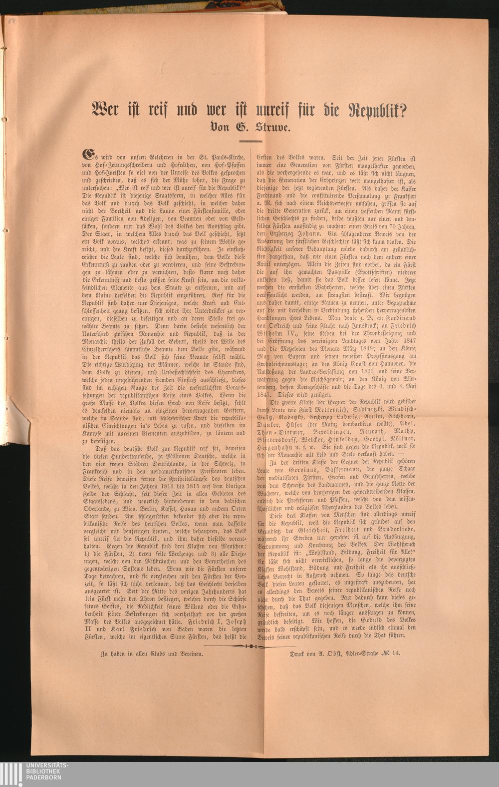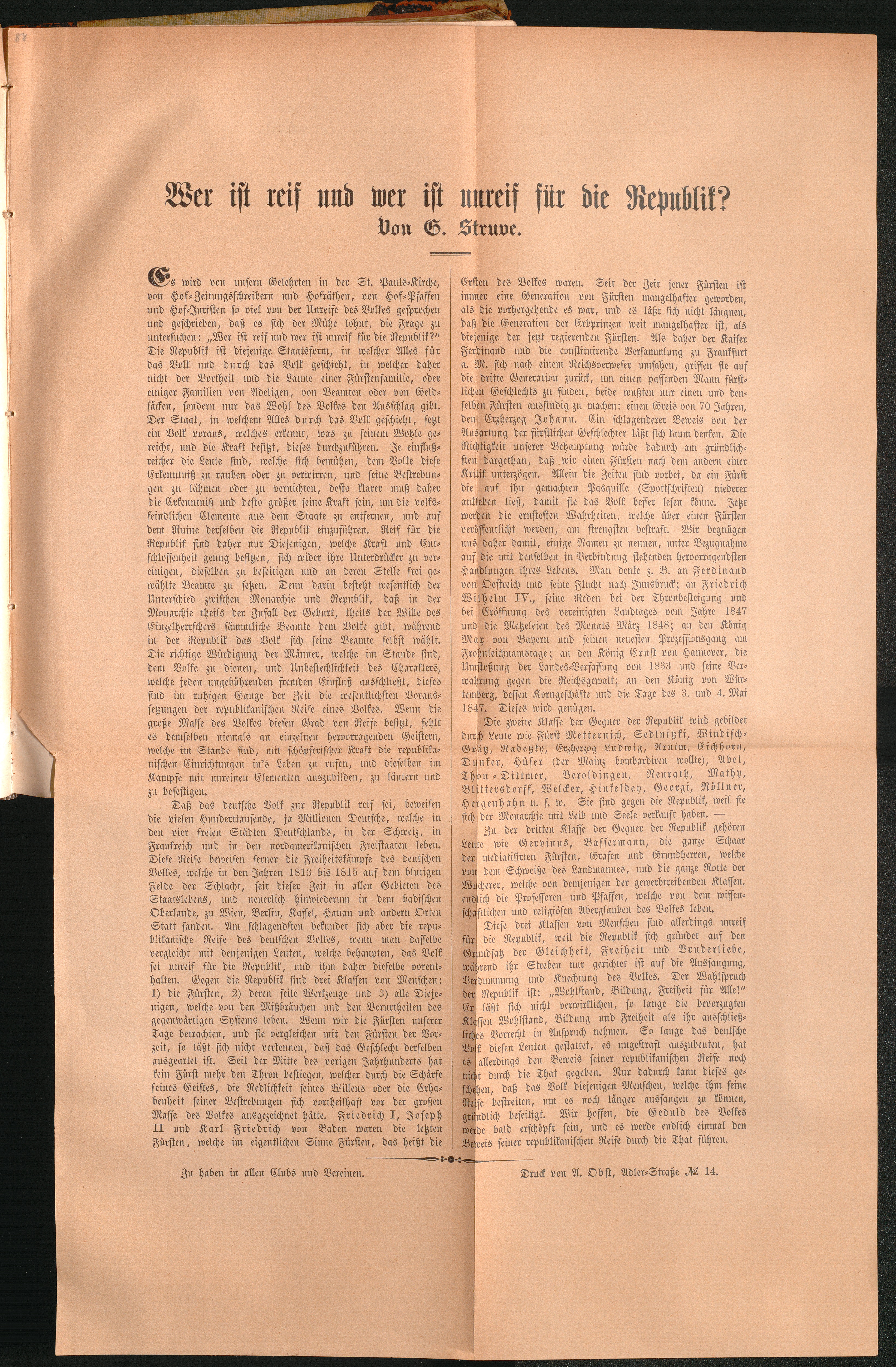 Wer ist reif und wer ist unreif für die Republik? Von G. Struve. (Mannheiner Alt[...]