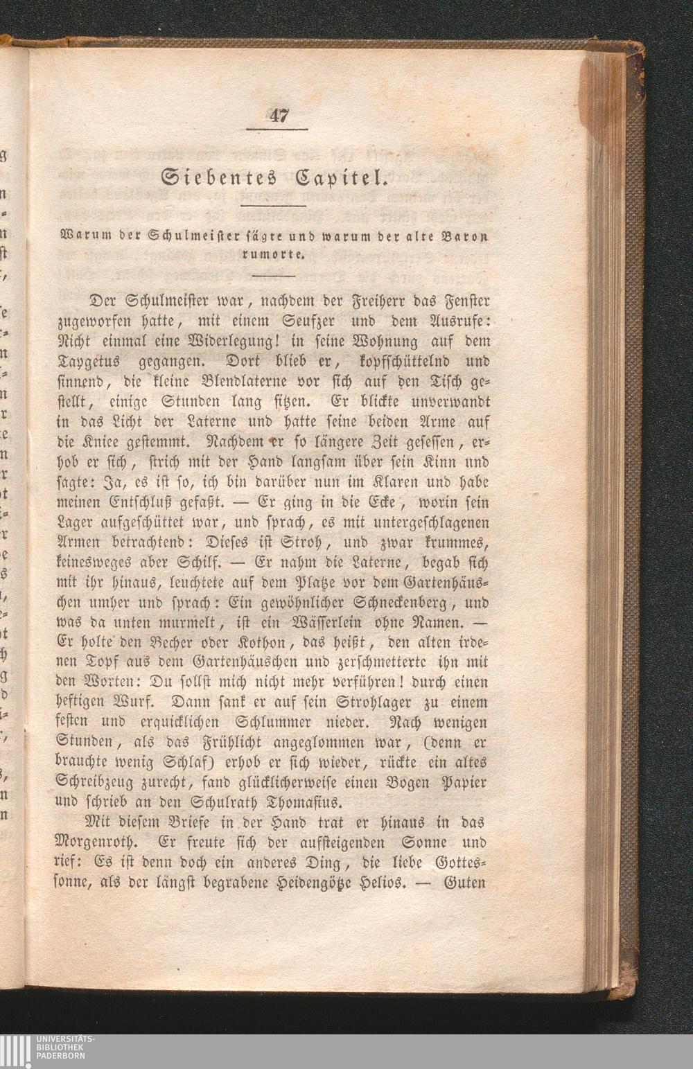 Siebentes Capitel. Warum der Schulmeister sägte und warum der alte Baron rumorte[...]