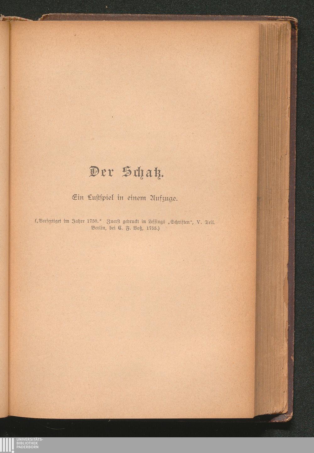 Die Juden. Der Schatz. Miss Sara Sampson. Philotas. Minna von Barnhelm.