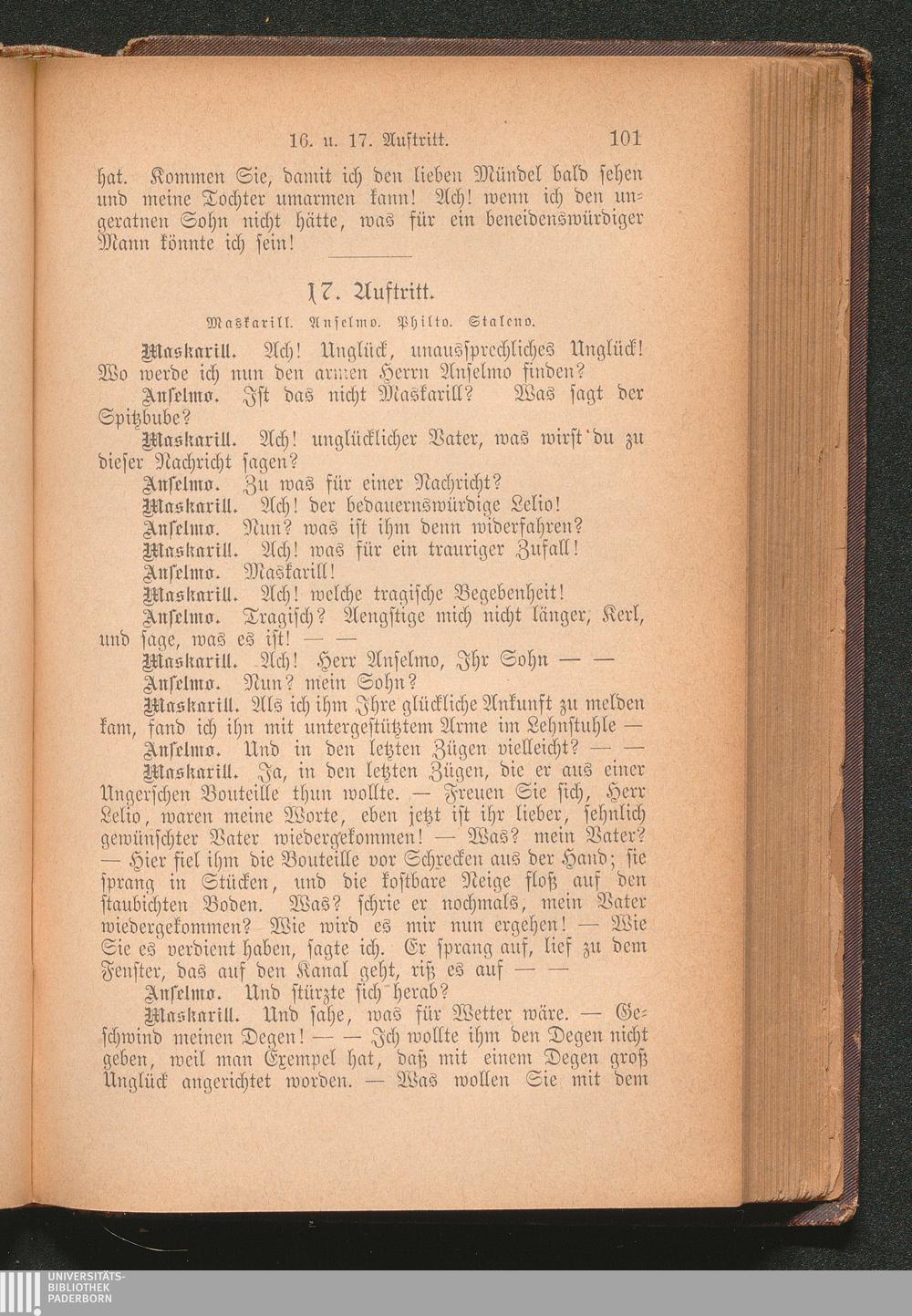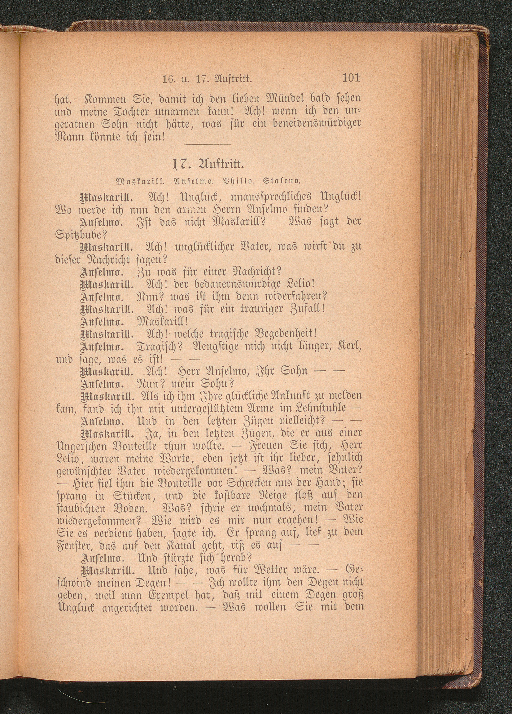 17. Auftritt. Maskarill. Anselmo. Philto. Staleno.