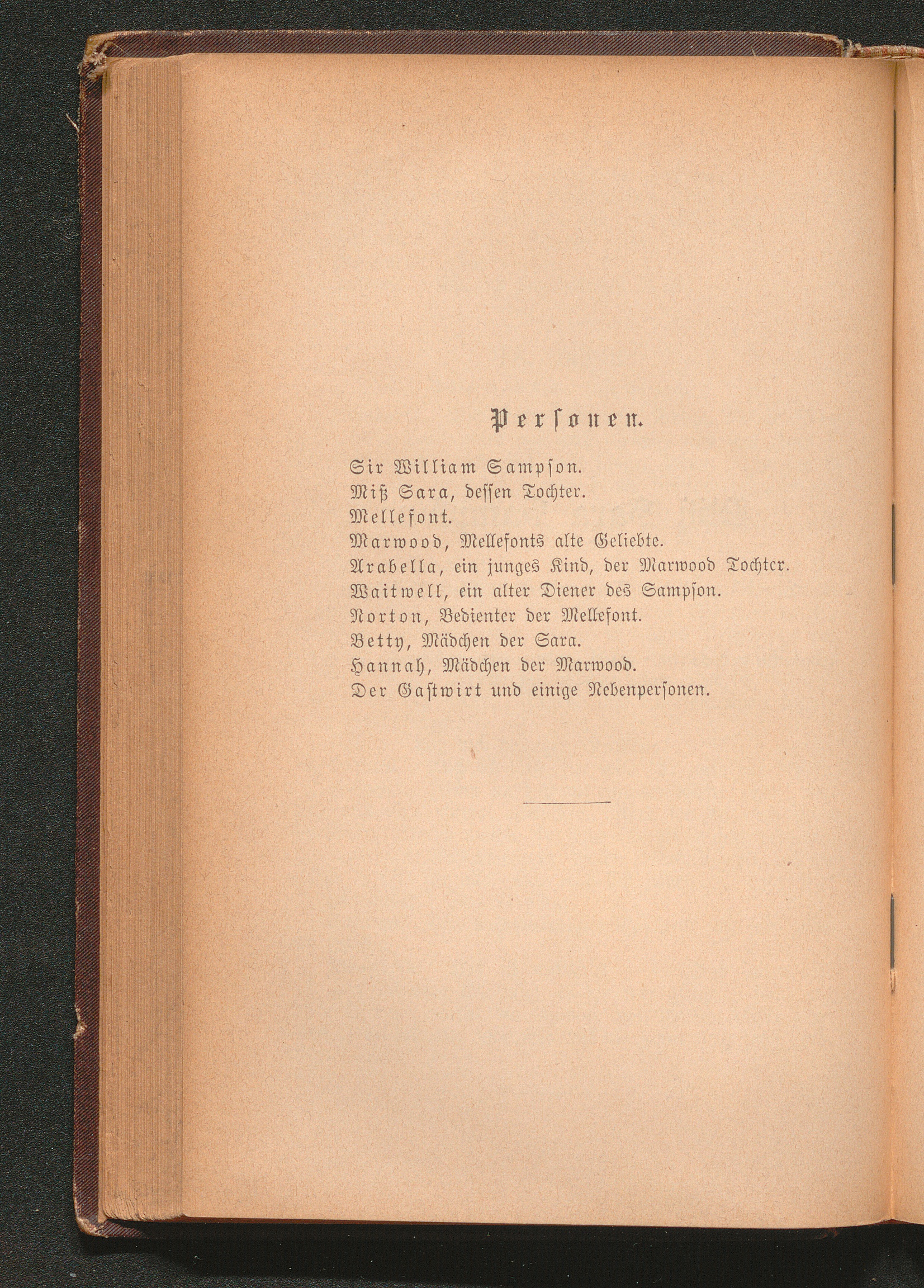 Miß Sara Sampson. Ein bürgerliches Trauerspiel in fünf Aufzügen.