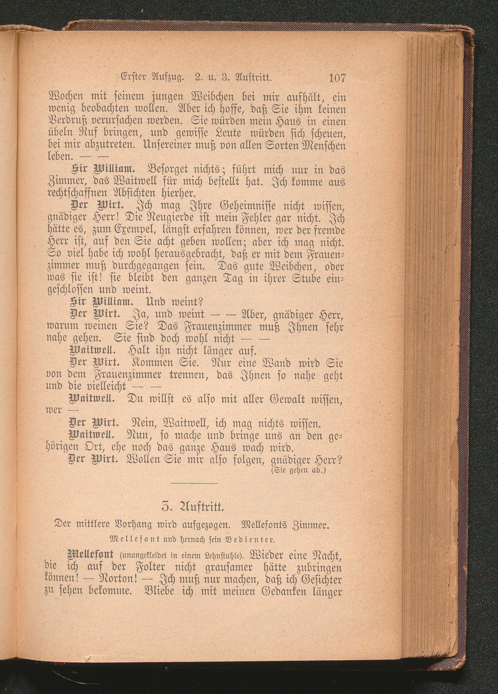 3. Auftritt. Der mittlere Vorhang wird aufgezogen. Mellesonts Zimmer.